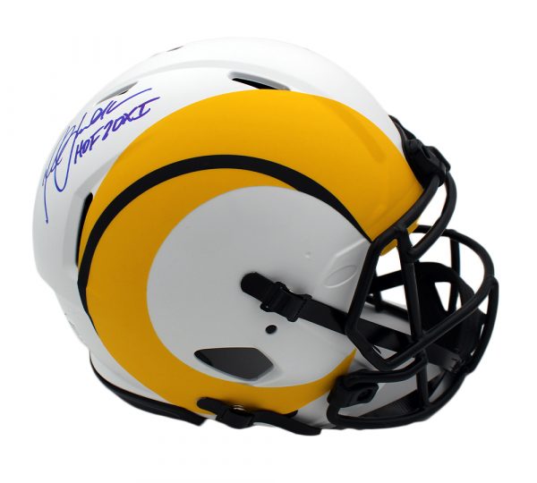 Riddell St. Louis Rams full-size Authentic On-Field Lunar Eclipse Alternate Speed helmet. Hand-signed and inscribed by Marshall Faulk (HOF).