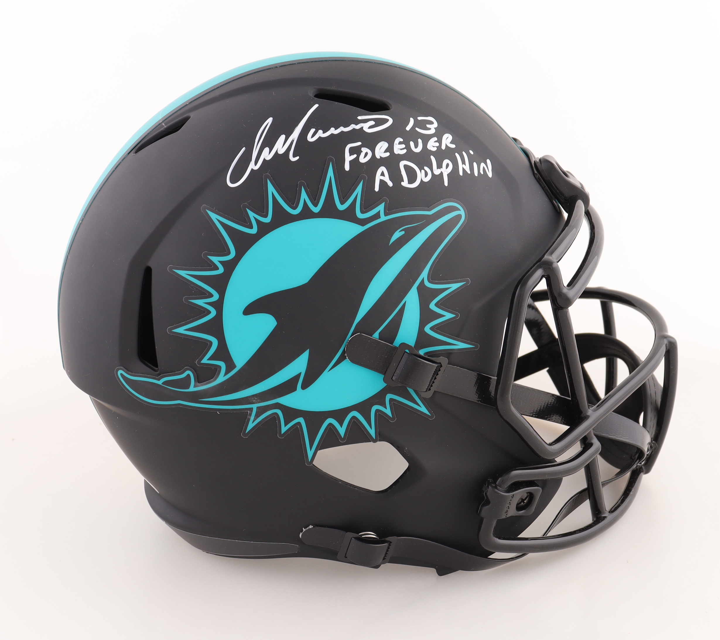 Riddell Miami Dolphins eclipse alternate speed Replica helmet. Hand-signed and inscribed by Dan Marino (HOF).