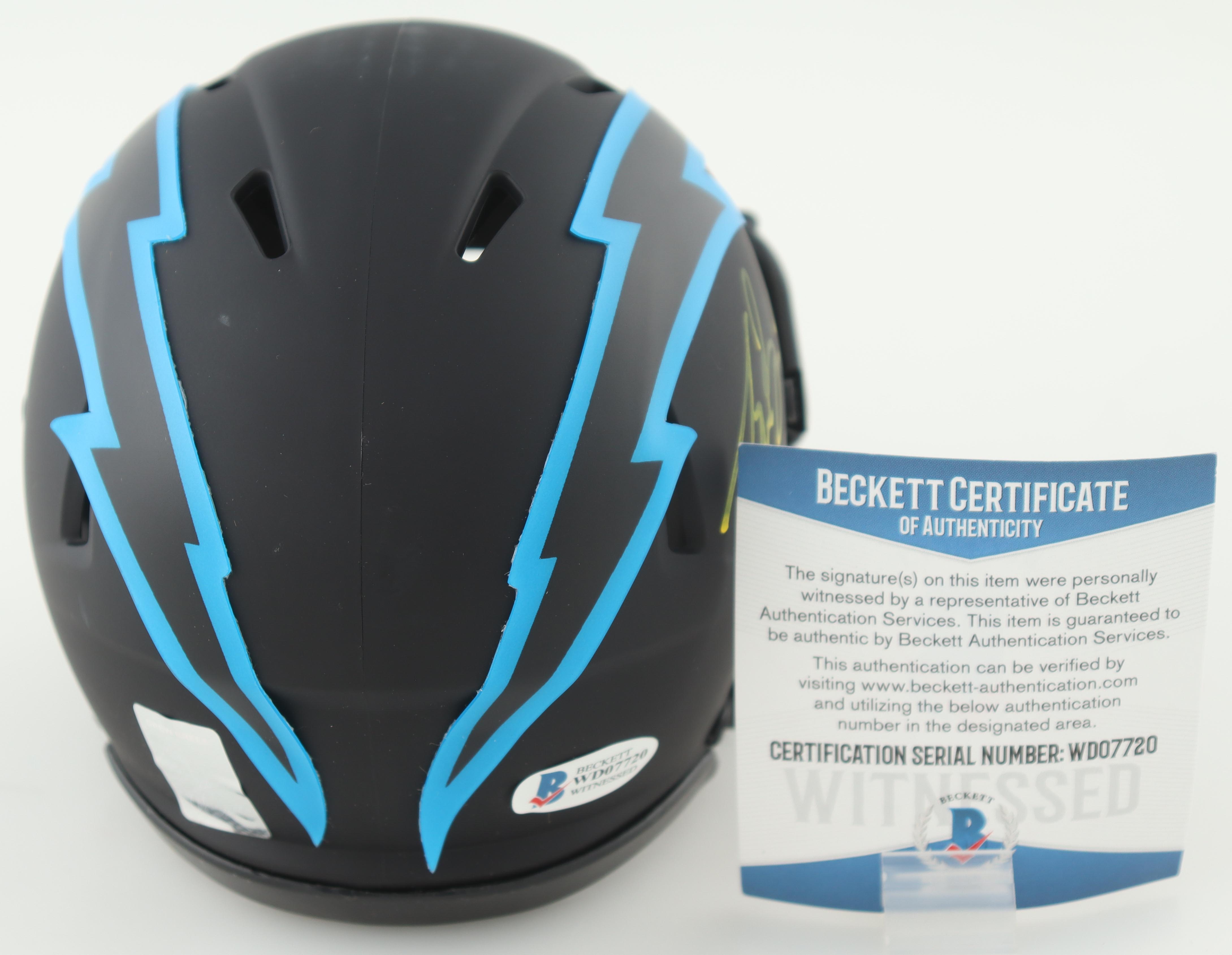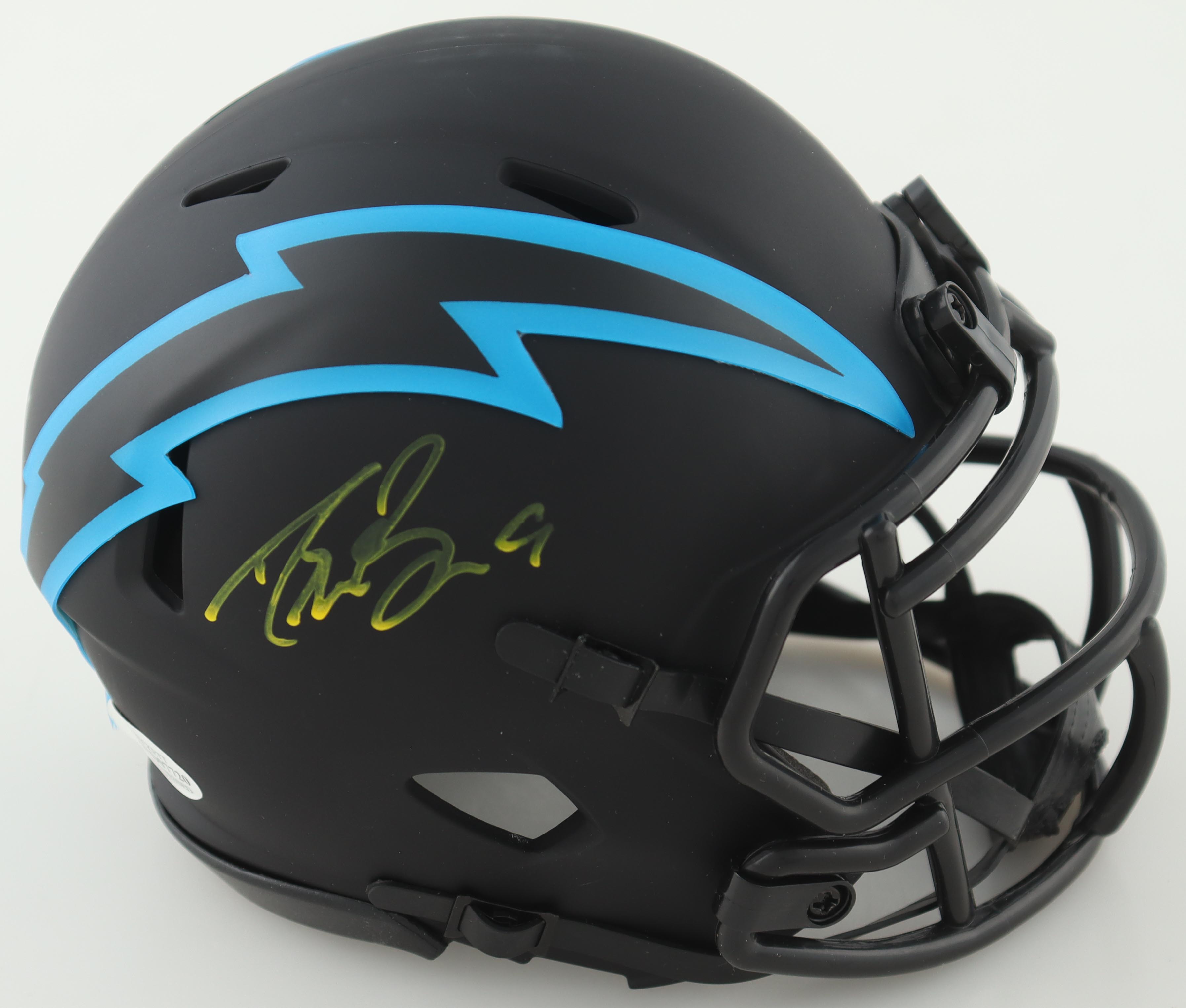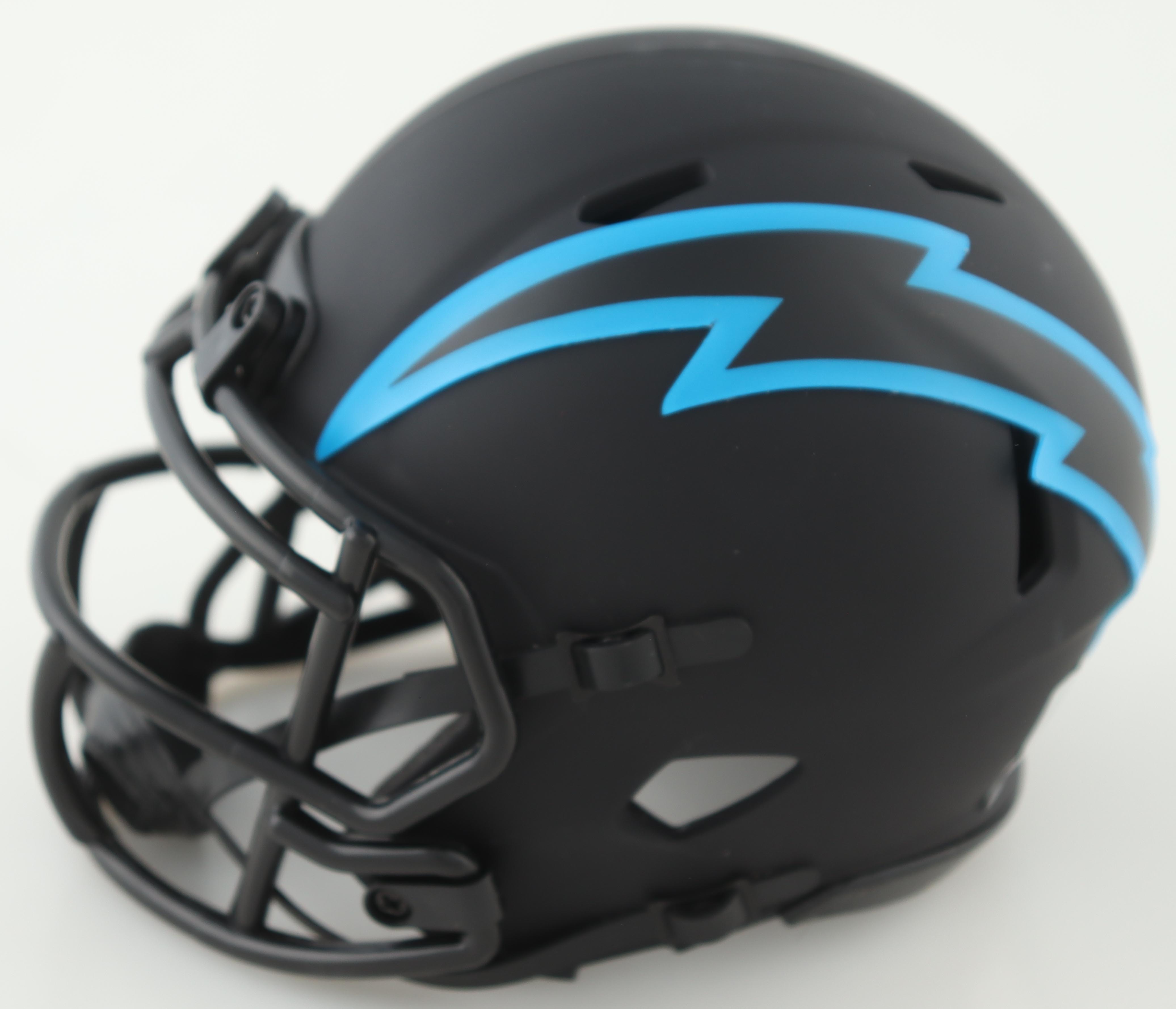 Riddell San Diego Chargers eclipse alternate speed mini helmet has been hand-signed by Drew Brees.