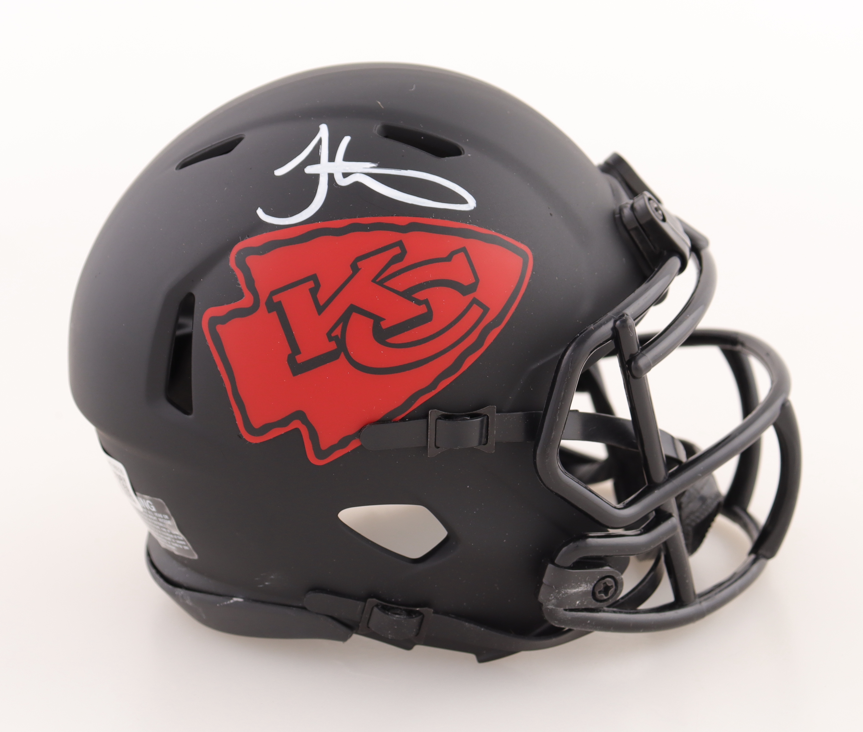 Riddell Kansas City Chiefs eclipse alternate speed mini helmet. Has been hand-signed by Tyreek Hill.