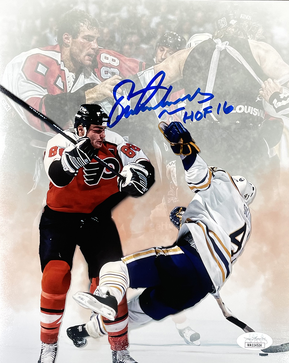 Eric Lindros Signed Flyers 8x10 Photo Inscribed "HOF 16" (JSA)