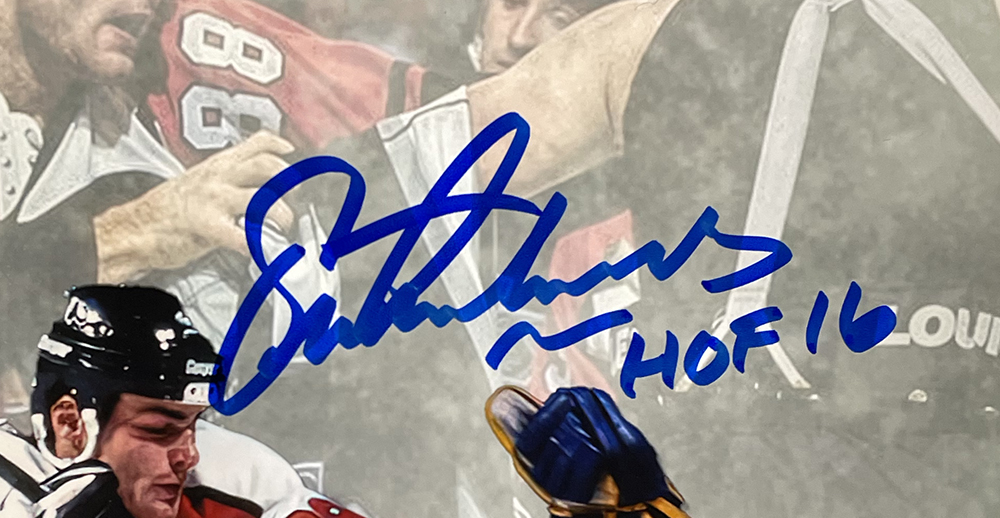 Photo measures 8" x 10" in size and has been hand-signed and inscribed by Eric Lindros (Philadelphia Flyers, HOF).