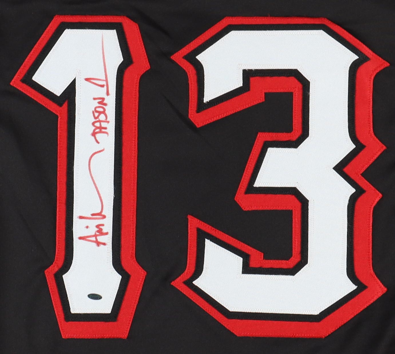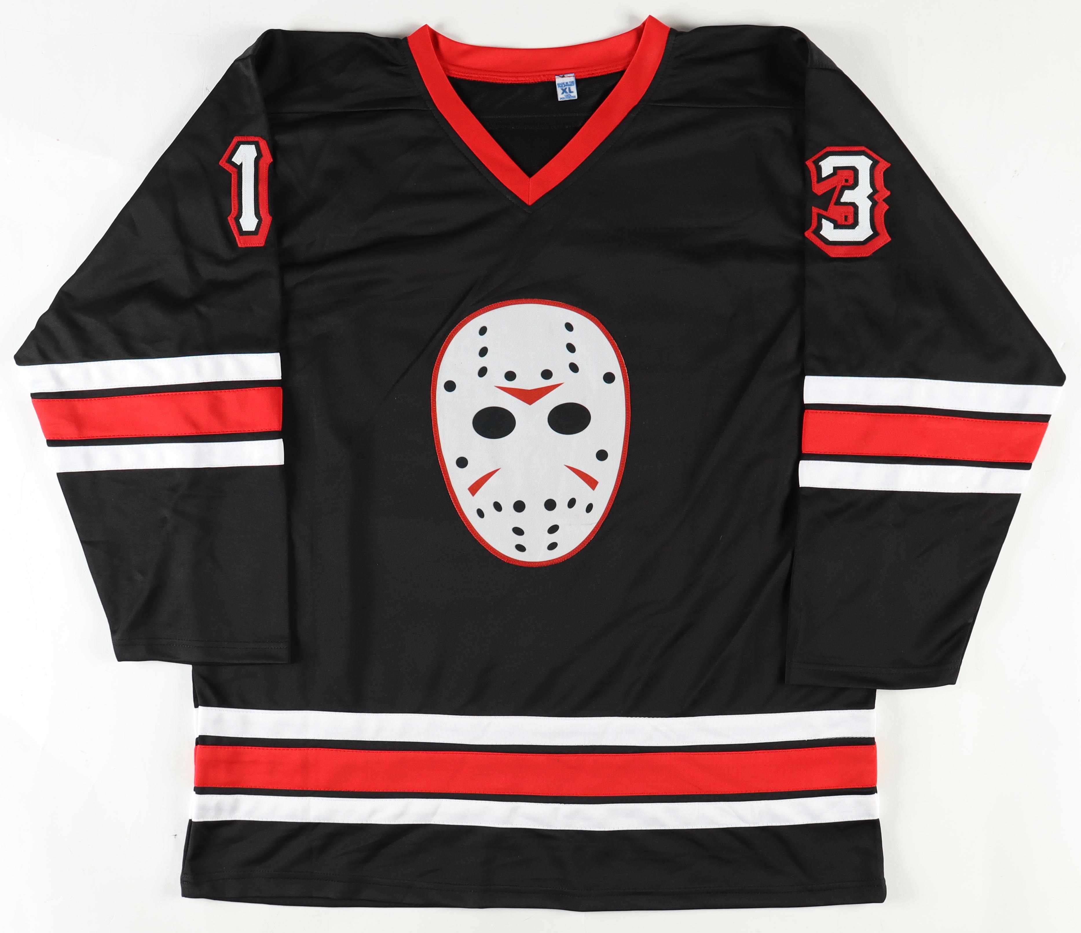Custom jersey with everything sewn on, size XL. Hand-signed and inscribed by Ari Lehman.