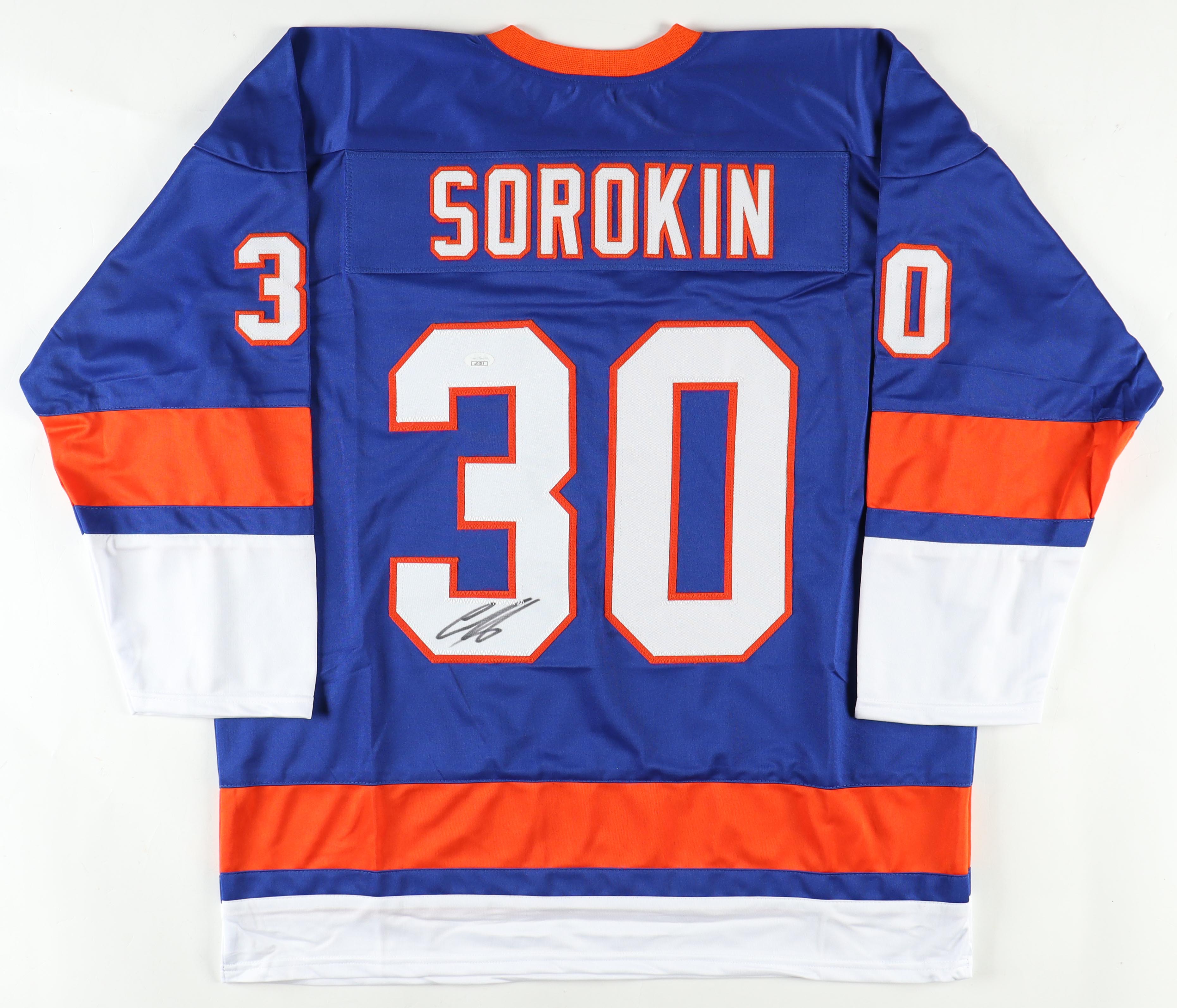 Custom jersey with everything sewn on, size XL. Hand-signed by Iyla Sorokin