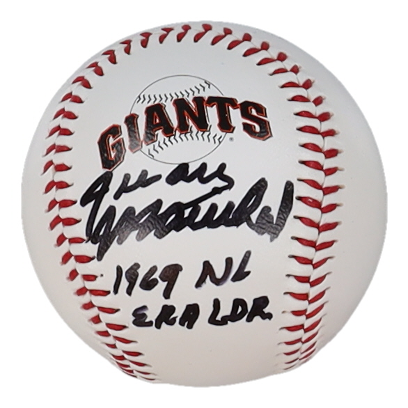 Juan Marichal Signed ONL Giants Logo Baseball Inscribed "1969 NL ERA LDR" (Beckett)