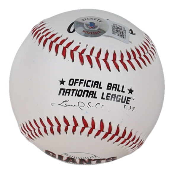 Rawlings Official National League Giants logo baseball has been hand-signed and inscribed by Juan Marichal (San Francisco Giants, HOF).