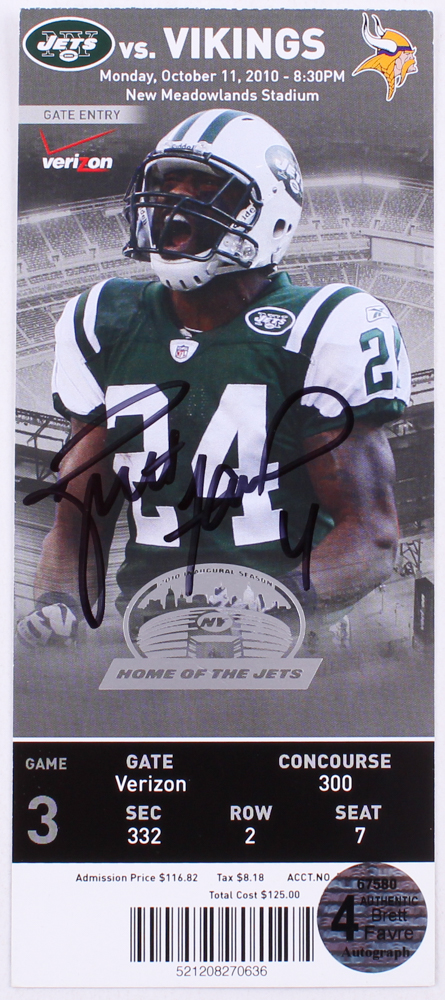Brett Favre Signed Original 2010 Vikings vs. Jets Football Ticket (Favre COA)
