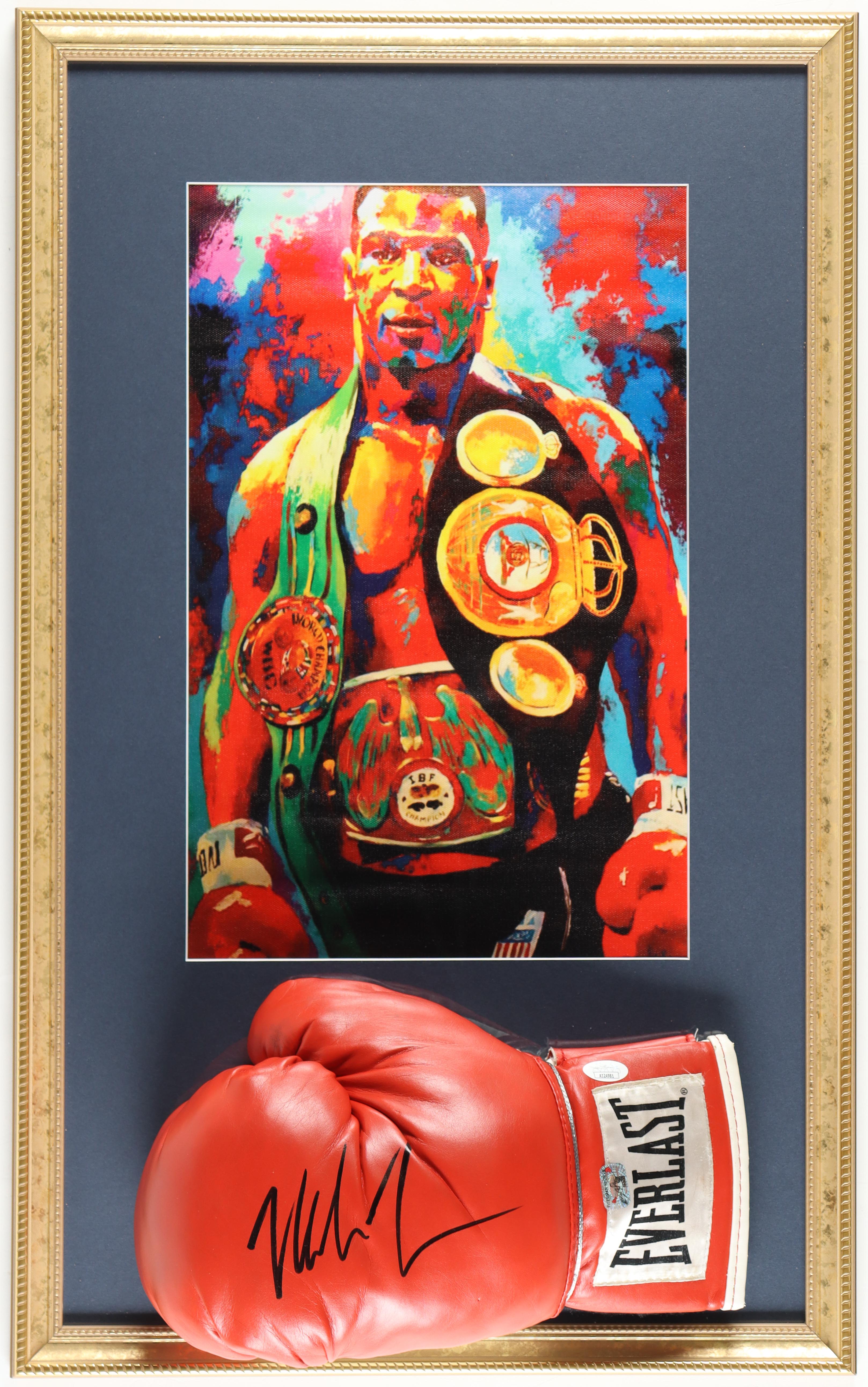 Custom frame measures 18" x 29" in size and features an Everlast boxing glove that has been hand-signed by Mike Tyson (HOF), as well as an art print of Mike Tyson.