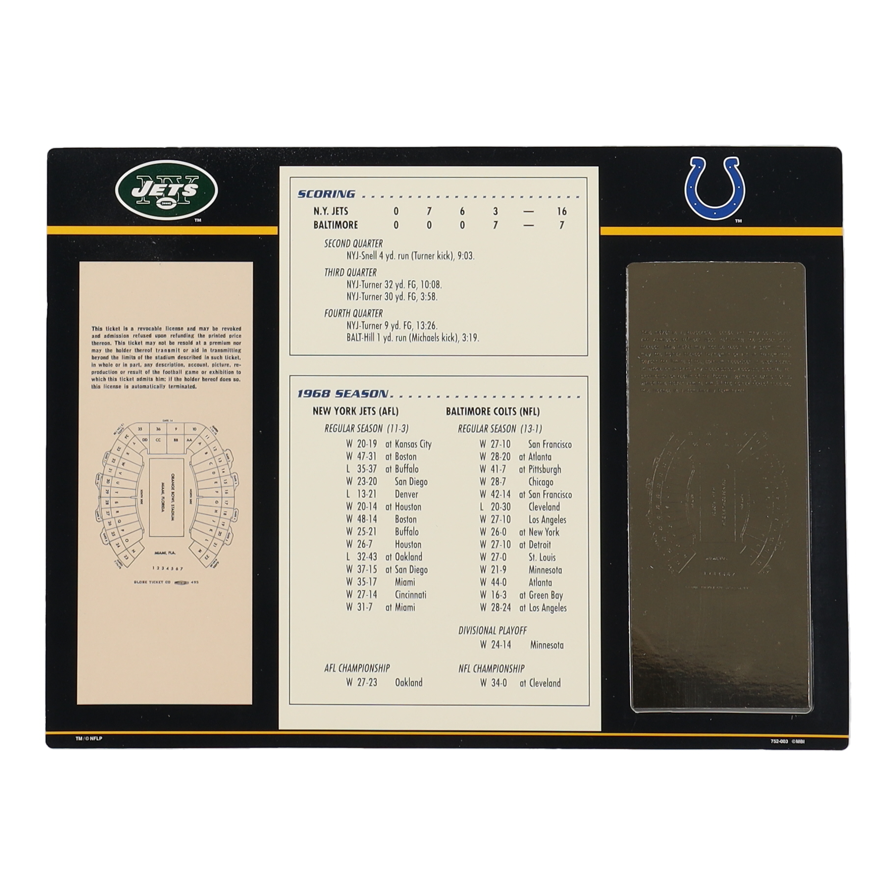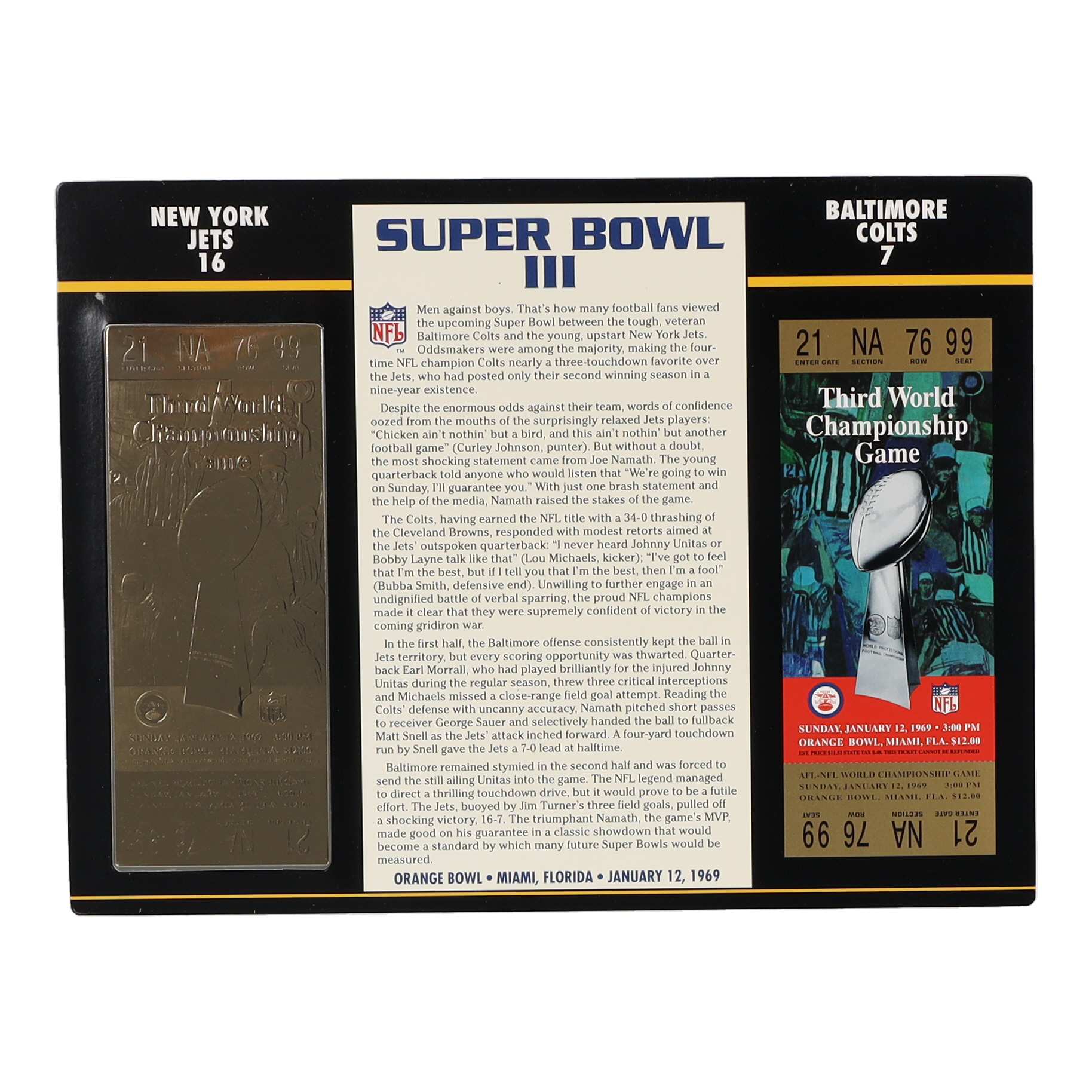 1969 Commemorative Super Bowl III Card with 22kt Gold Ticket: Jets vs Colts