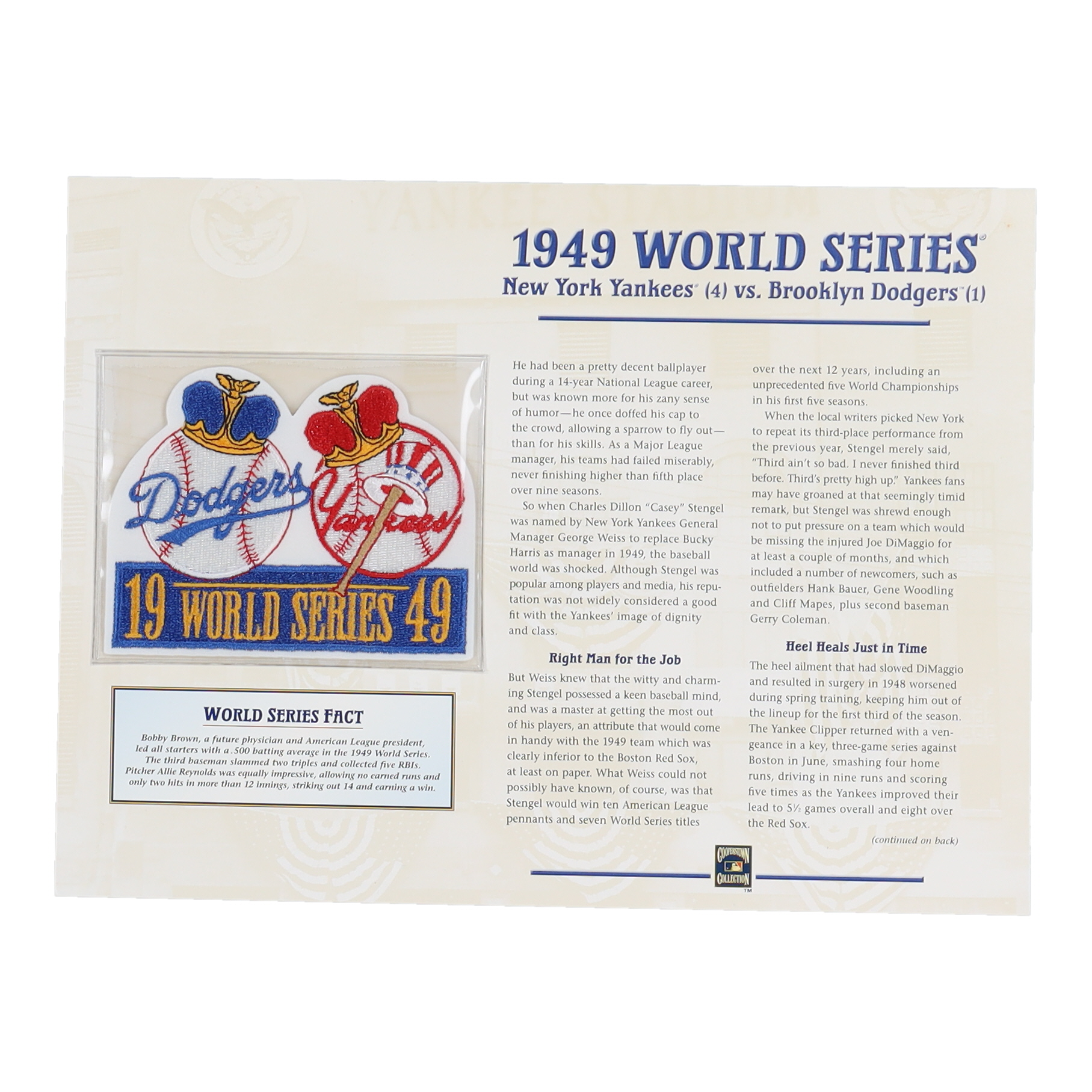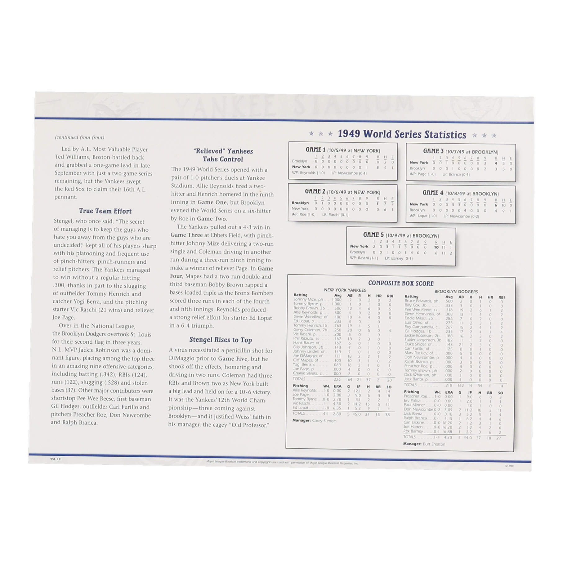 1949 World Series Commemorative 9x12 Stat Card With Cloth Uniform Patch
