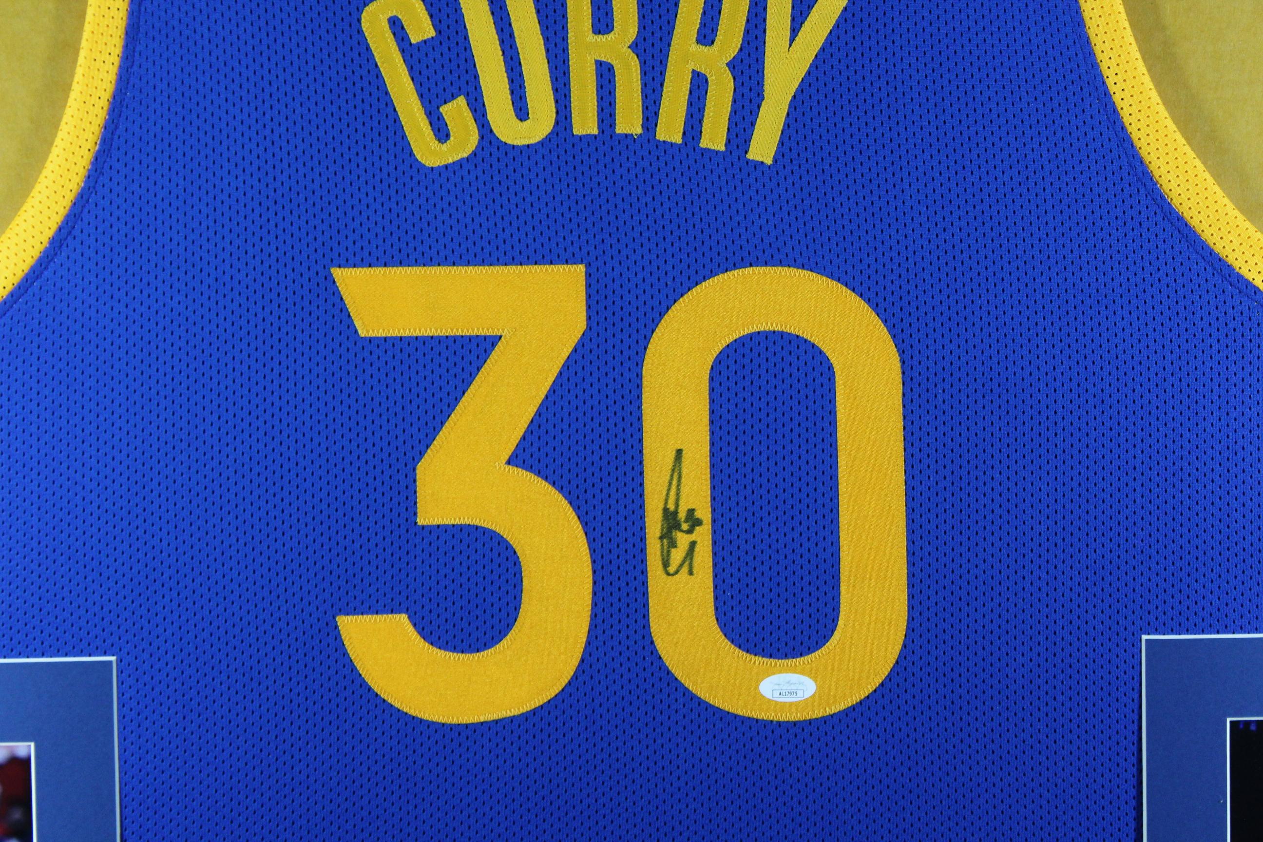 Custom frame measures approximately 35" x 43" in size and features a jersey that has been hand-signed by Stephen Curry.