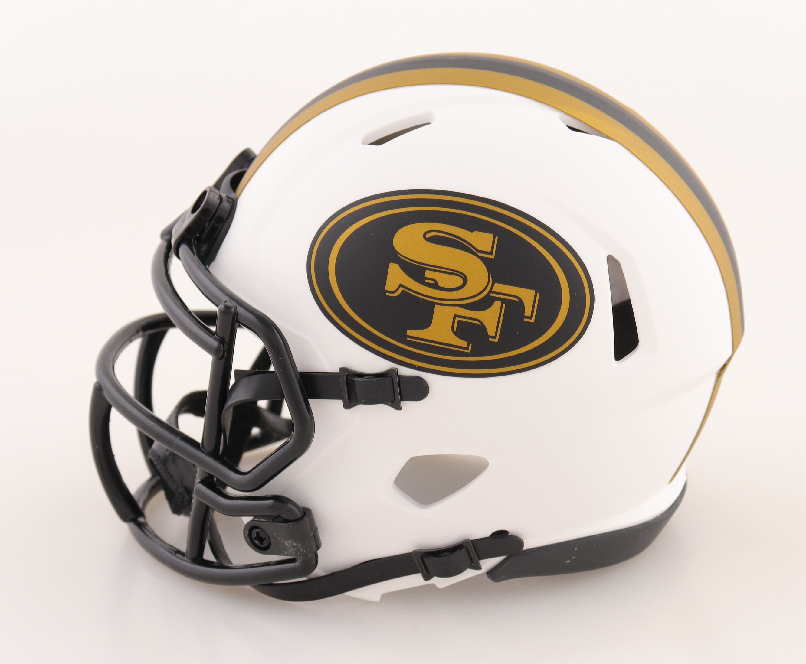 Riddell San Francisco 49ers lunar eclipse alternate speed mini helmet. Hand-signed by Fred Warner.