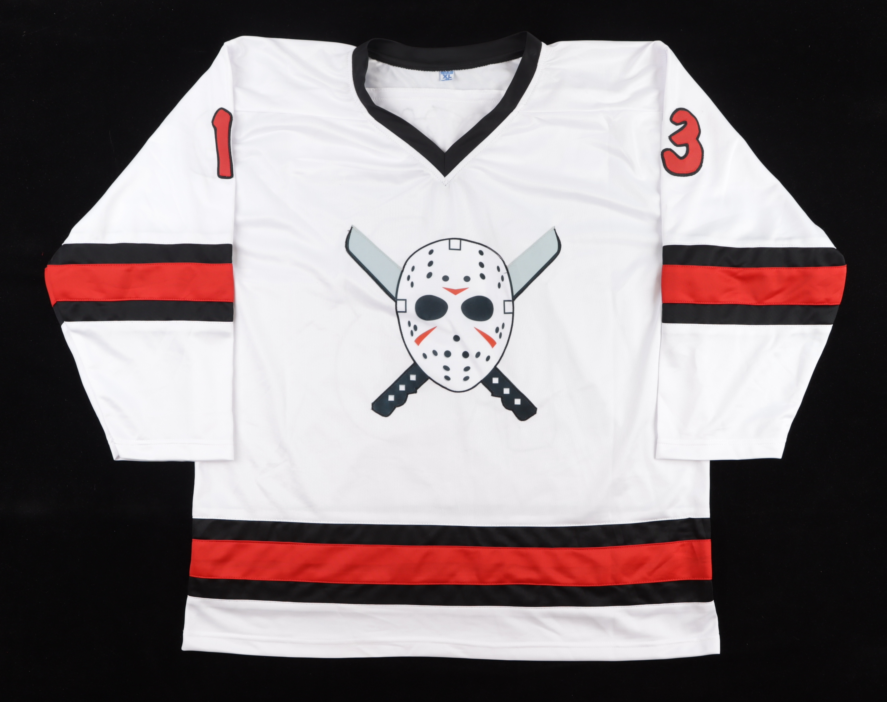 Custom jersey. Everything is sewn on, size XL. Hand-signed and inscribed by Ari Lehman.