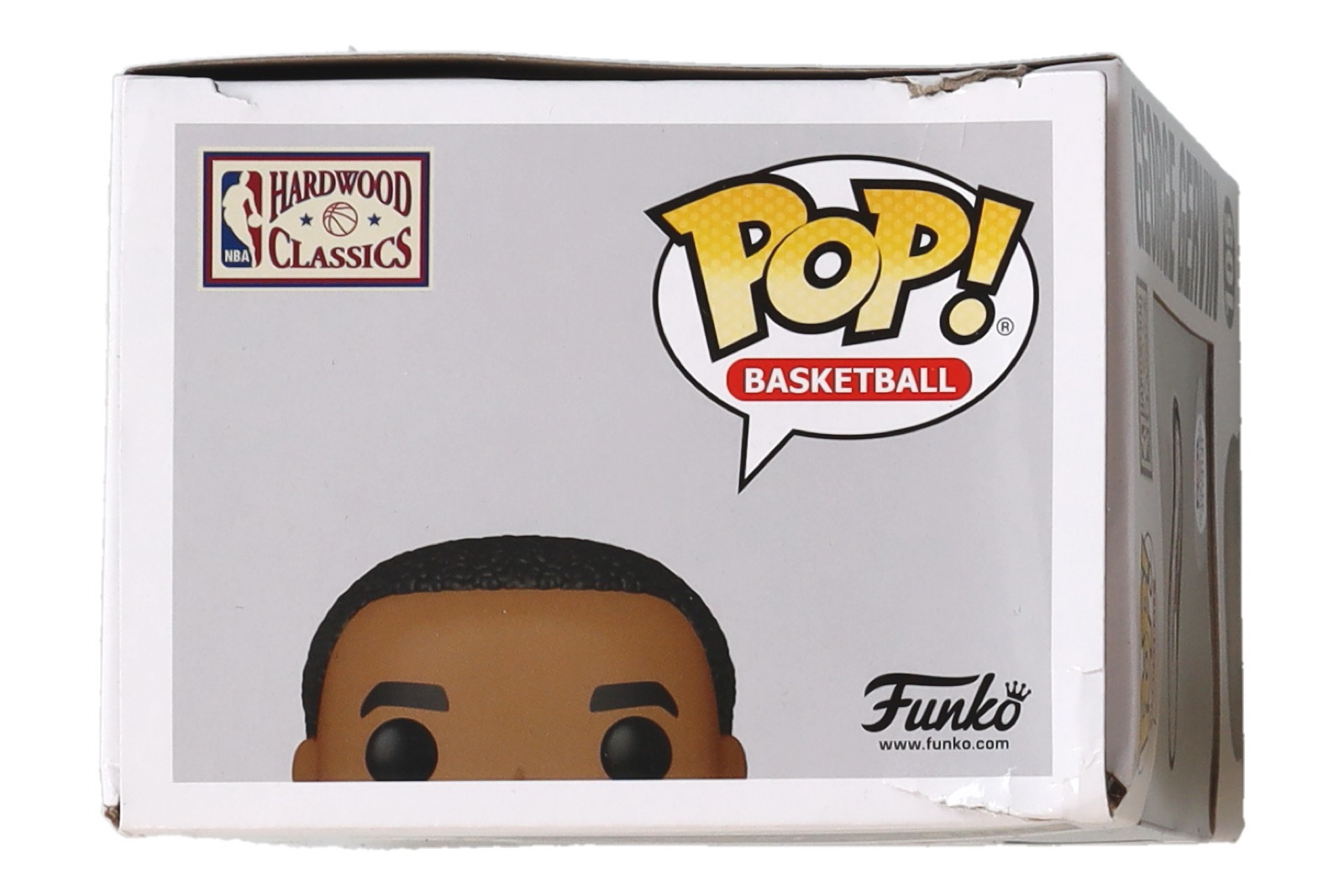 Vinyl figure measures approximately 4" tall and has been hand-signed and inscribed on the packaging by George Gervin (San Antonio Spurs, HOF). Please note the tear near the top of the packaging.