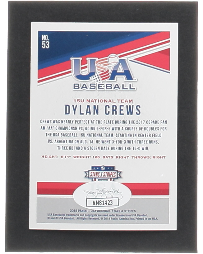 Dylan Crews Signed 2018 USA Baseball Stars and Stripes #53 RC (JSA)