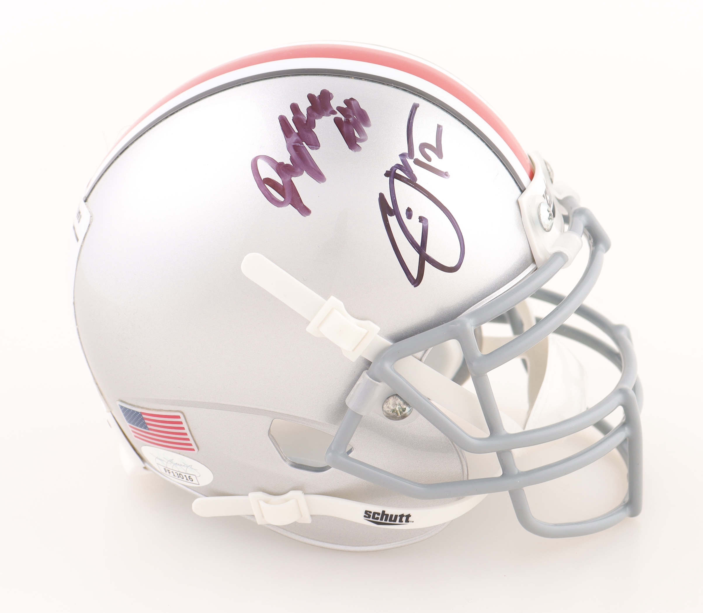 Dwayne Haskins & Cardale Jones Signed 2014 Ohio State Buckeyes National Champions Mini Helmet (JSA)