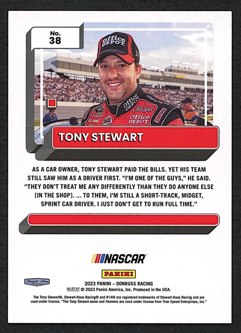 Tony Stewart 2023 Donruss #38 Black Trophy Club #1/1