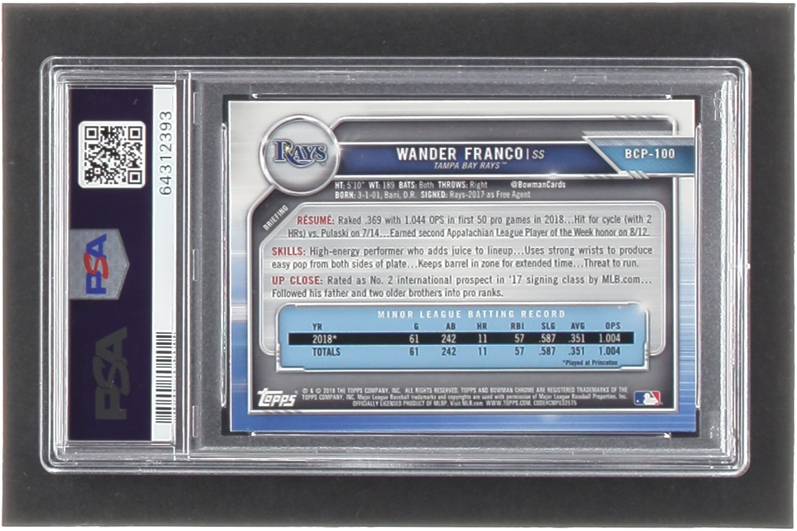 Wander Franco Signed 2019 Bowman Chrome Prospects #BCP100 RC (PSA | Auto 10)