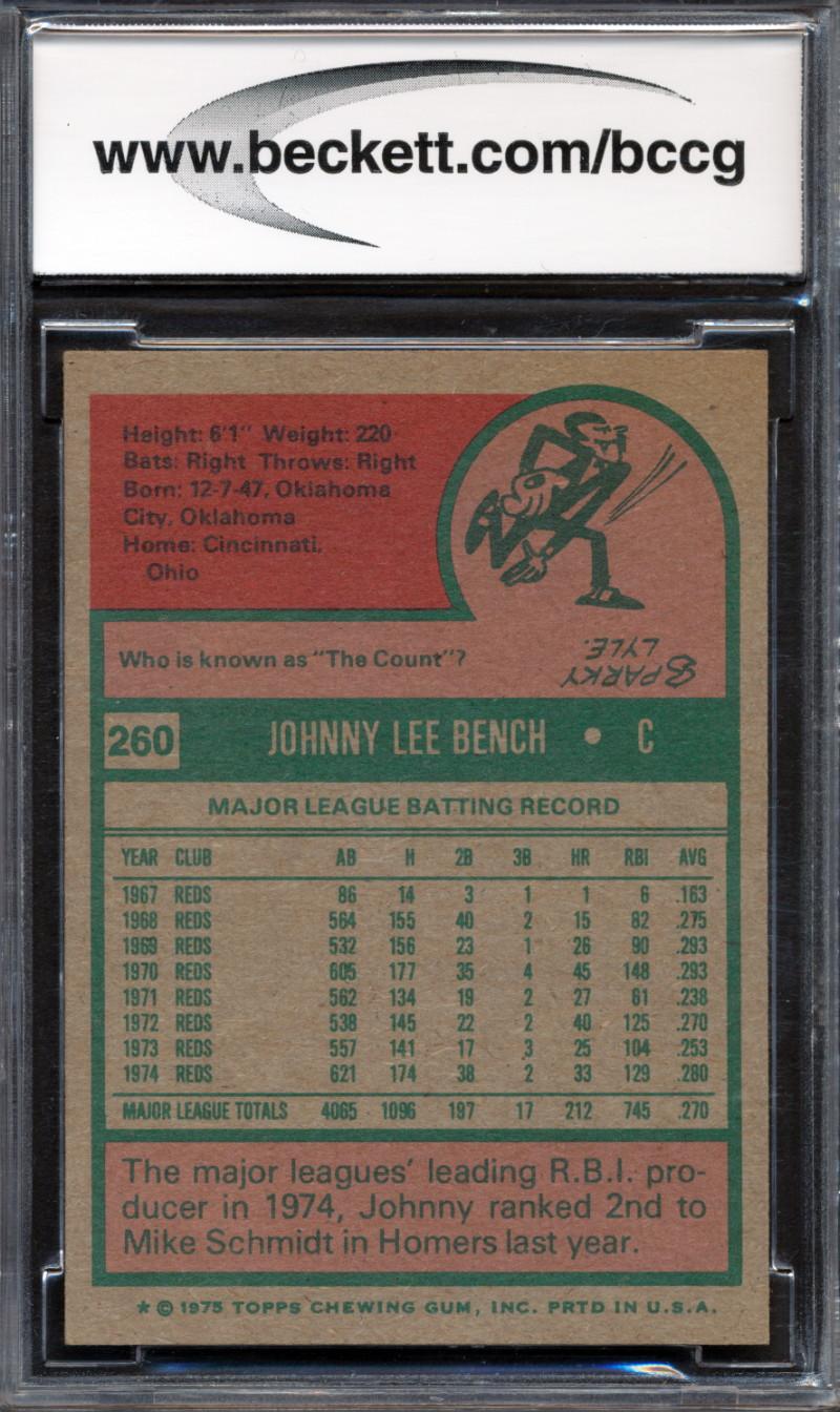 Johnny Bench 1975 Topps #260 (BCCG 9)