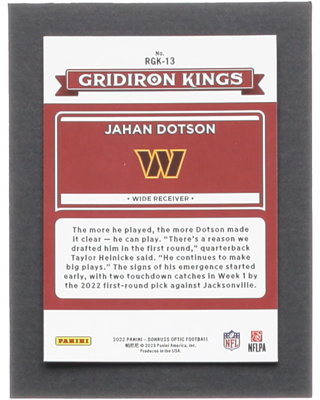 Jahan Dotson 2022 Donruss Optic Rookie Gridiron Kings #13 RC