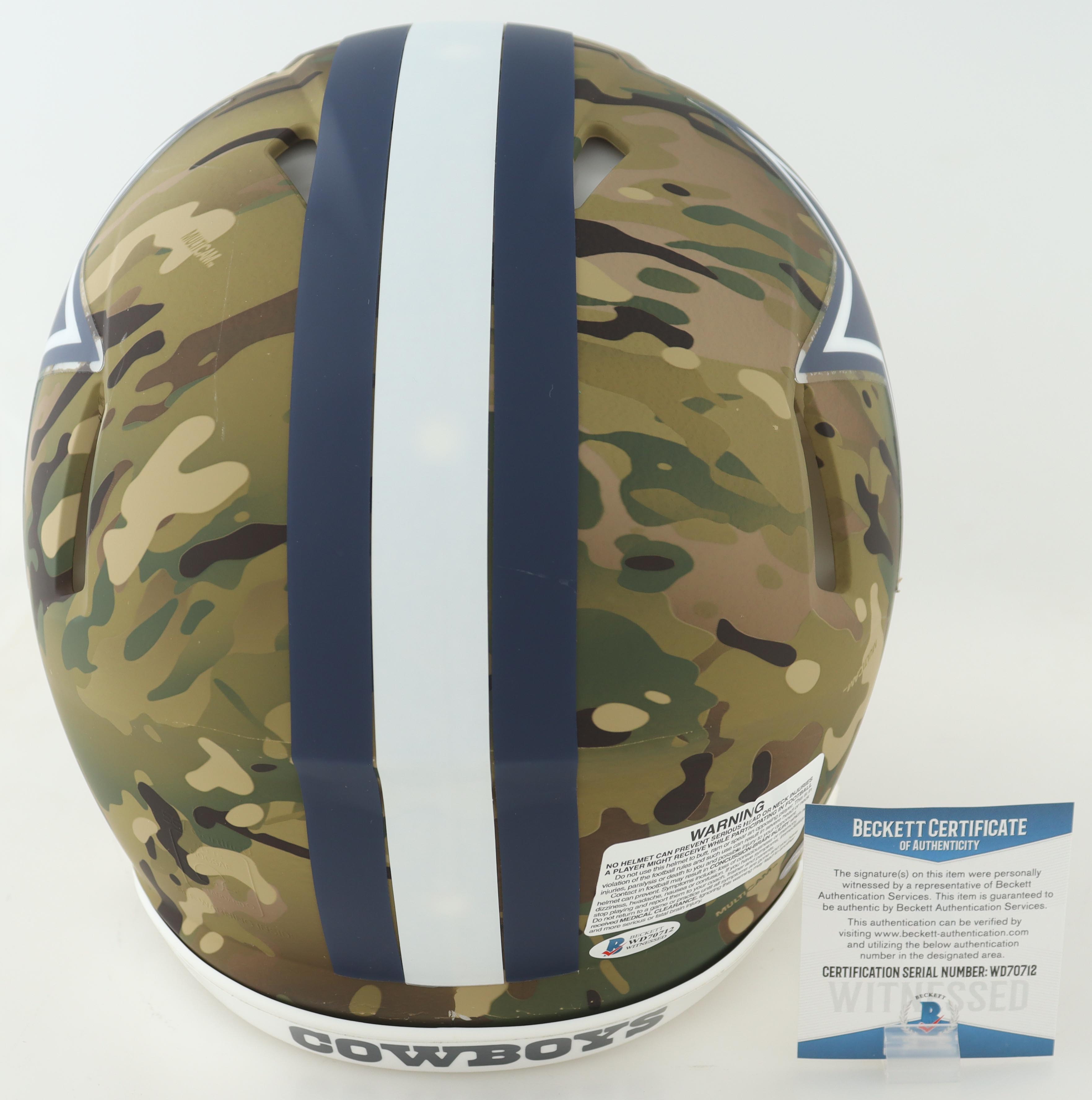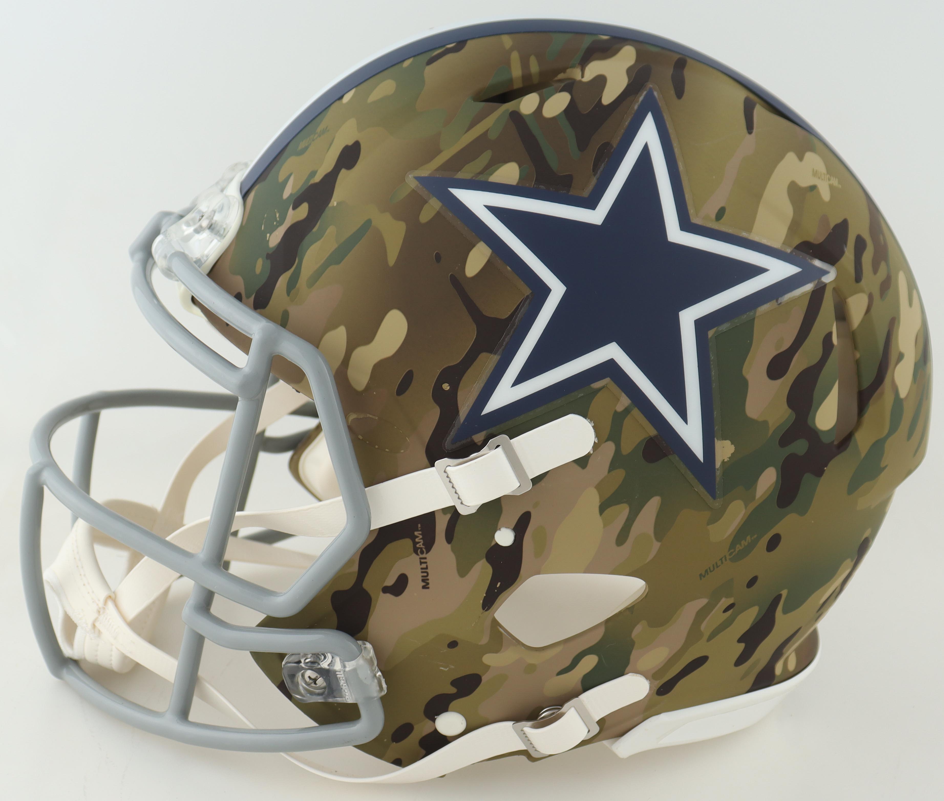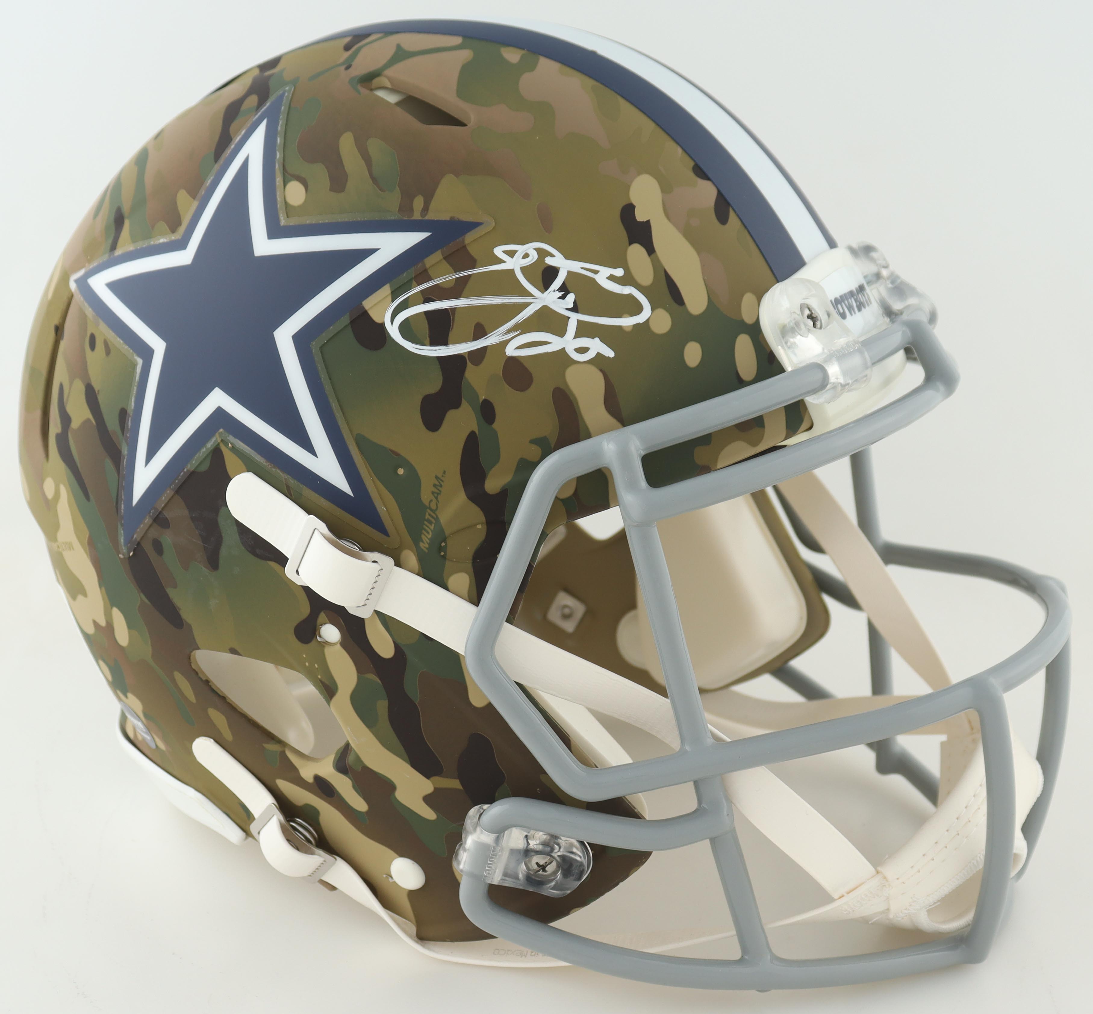 Riddell Dallas Cowboys full-size authentic on field Camo Alternate Speed helmet. Hand-signed by Emmitt Smith (HOF).