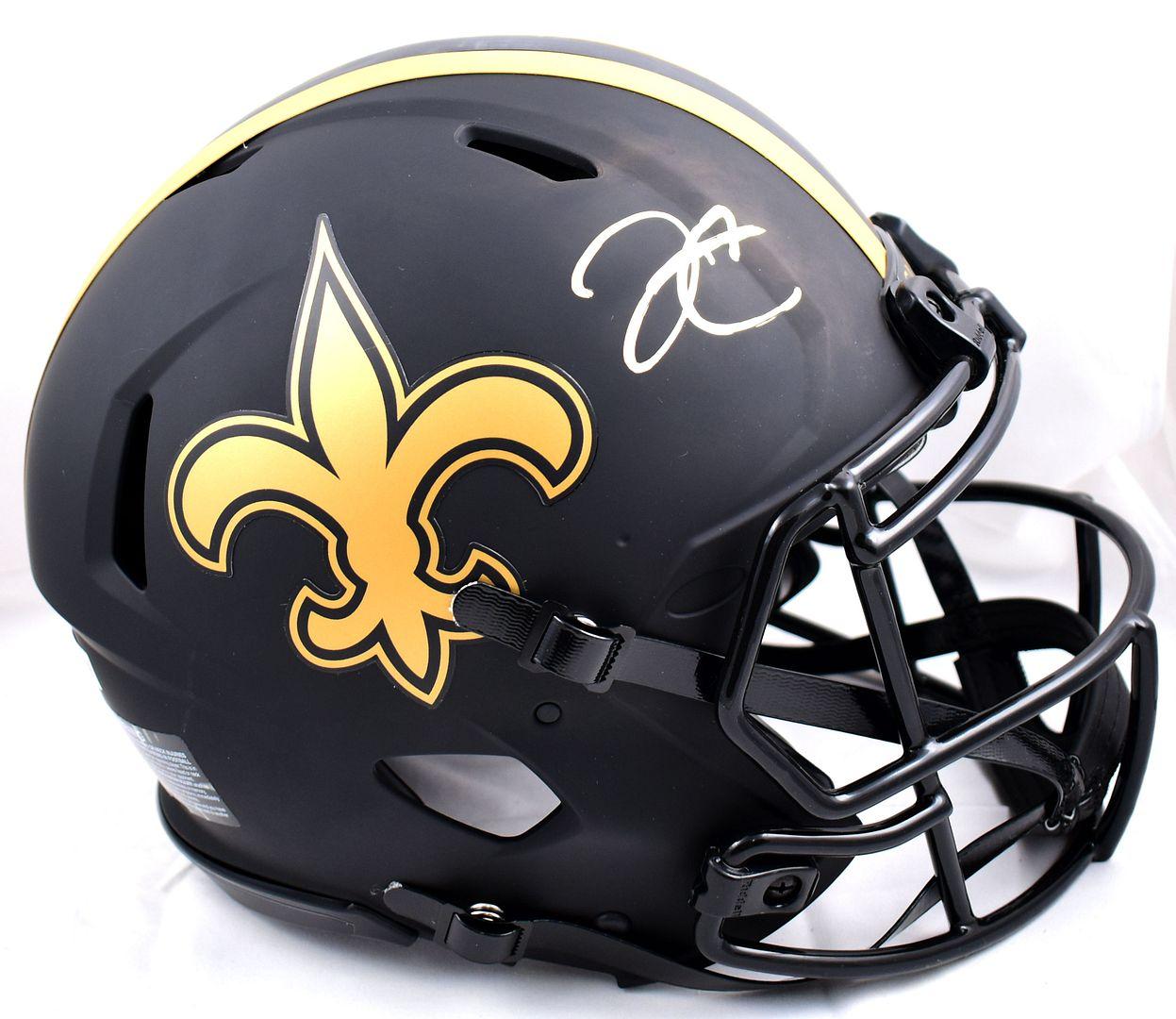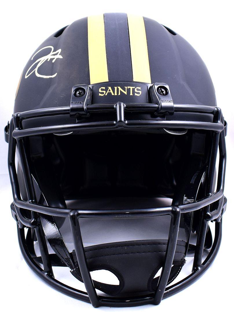 Riddell New Orleans Saints full-size authentic, on-field Eclipse Alternate Speed helmet. Hand-signed by Derek Carr.
