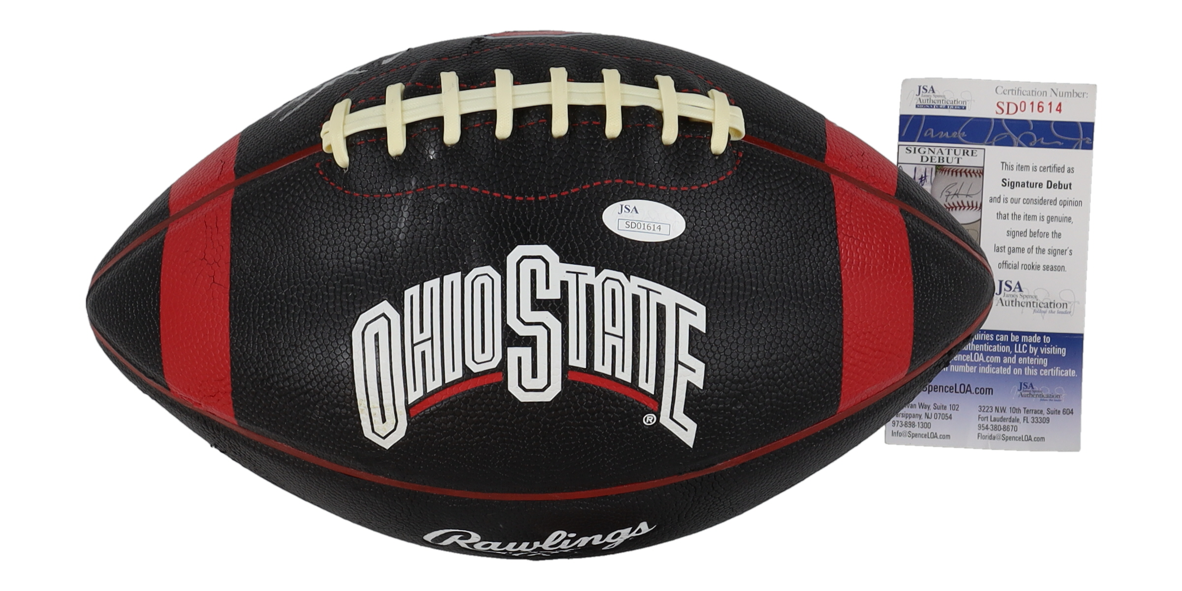 The autograph(s) includes an official James Spence Authentication (JSA) "Signature Debut" hologram and COA. "Signature Debut" is the autographed memorabilia equivalent to a rookie card. The JSA definition of a "Signature Debut" is as follows: "Any item that is autographed and received by JSA prior to the last game of the signer's official rookie season.