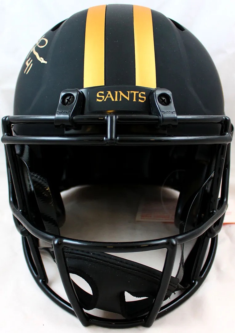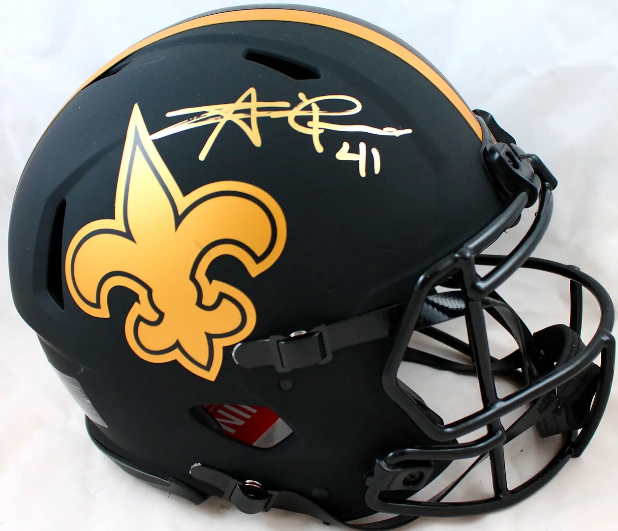 Riddell New Orleans Saints full-size authentic on-field Eclipse Alternate Speed helmet. Hand-signed by Alvin Kamara.