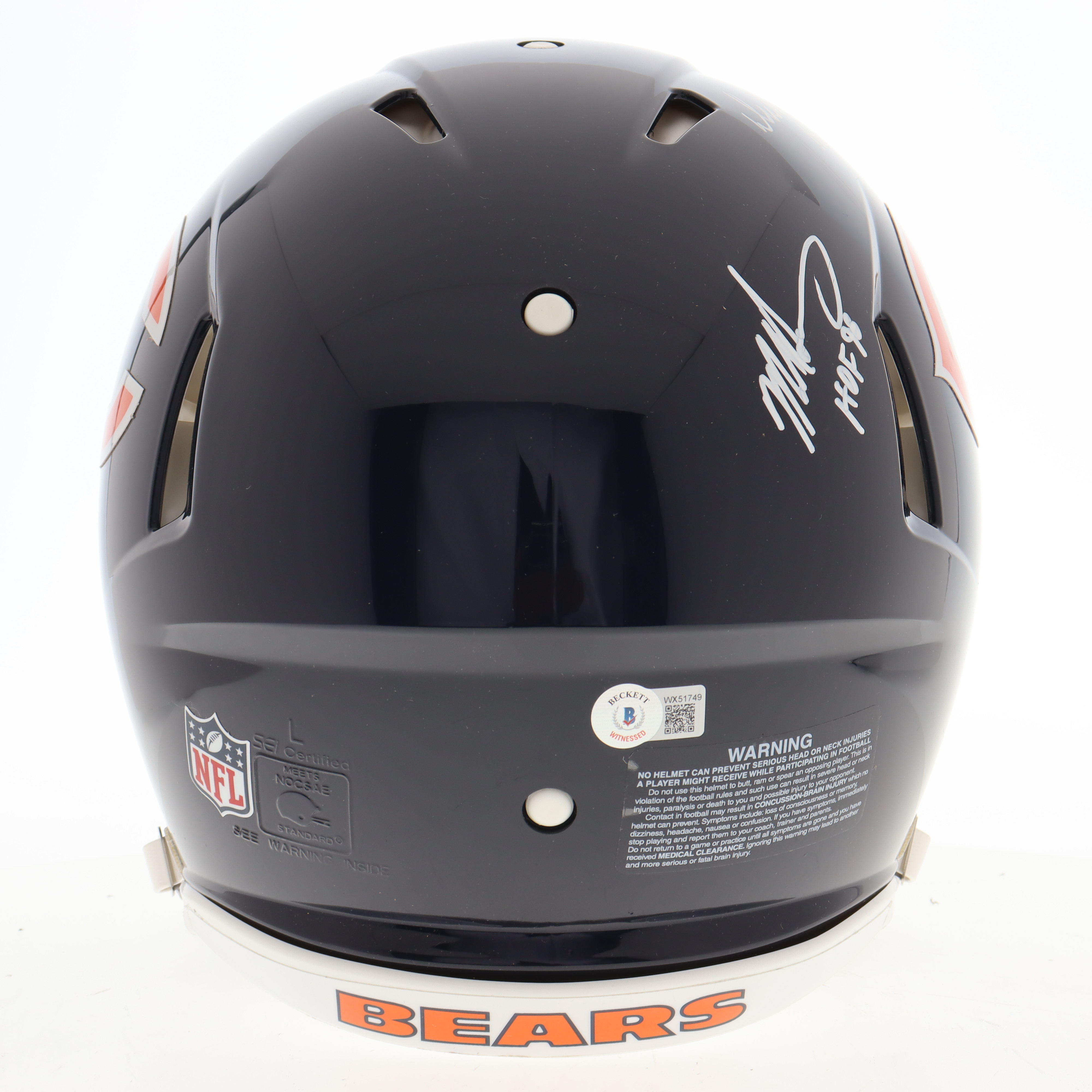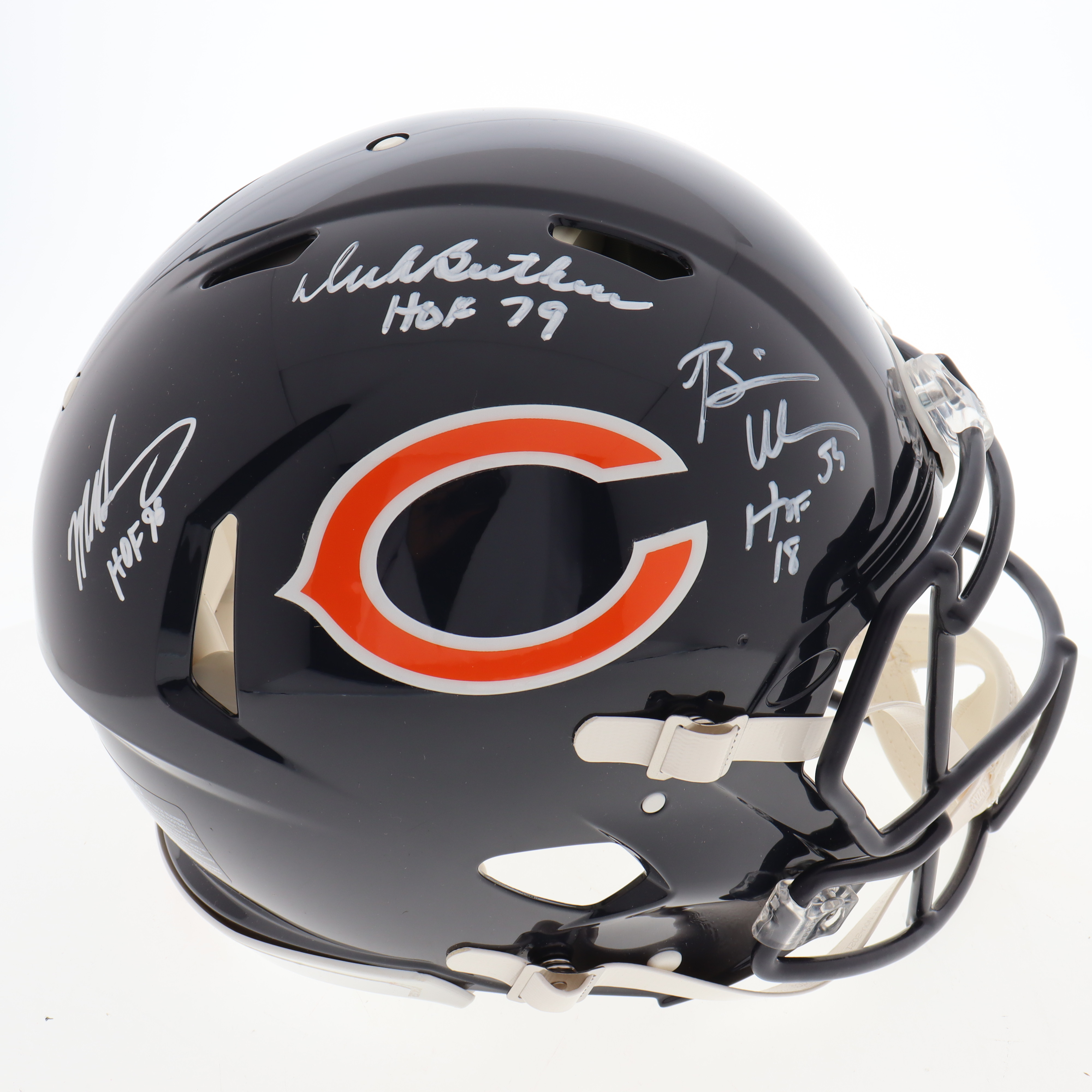 Riddell Chicago Bears full-size authentic on-field Speed helmet. Hand-signed and inscribed by Brian Urlacher (HOF), Dick Butkus (HOF), and Mike Singletary (HOF).