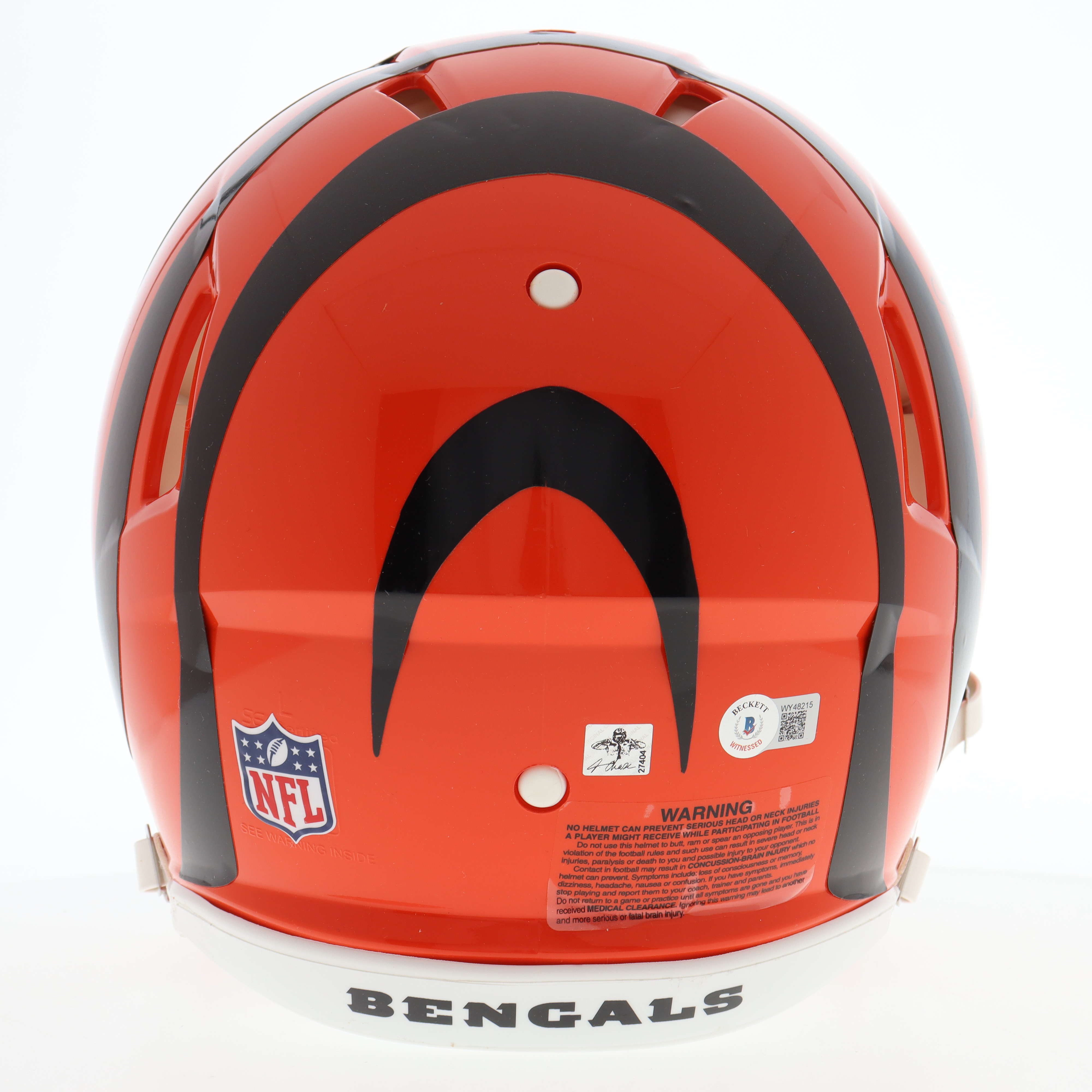 The autograph includes an official Beckett Authentication Services serially numbered hologram, as well as an official Ja'Marr Chase player hologram for authenticity purposes. The signing of this item was witnessed by Beckett.