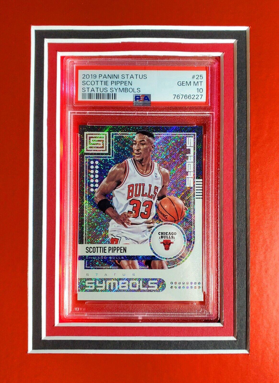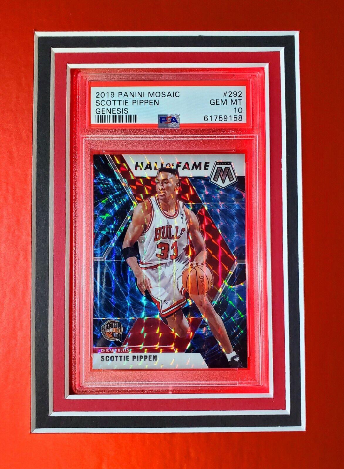 Scottie Pippen Signed Custom Framed Bulls Jersey LED Display with 2019-20 Panini Mosaic Mosaic Genesis #292 HOF (PSA 10) & 2019-20 Panini Status Status Symbols #25 (PSA 10) (Fanatics)
