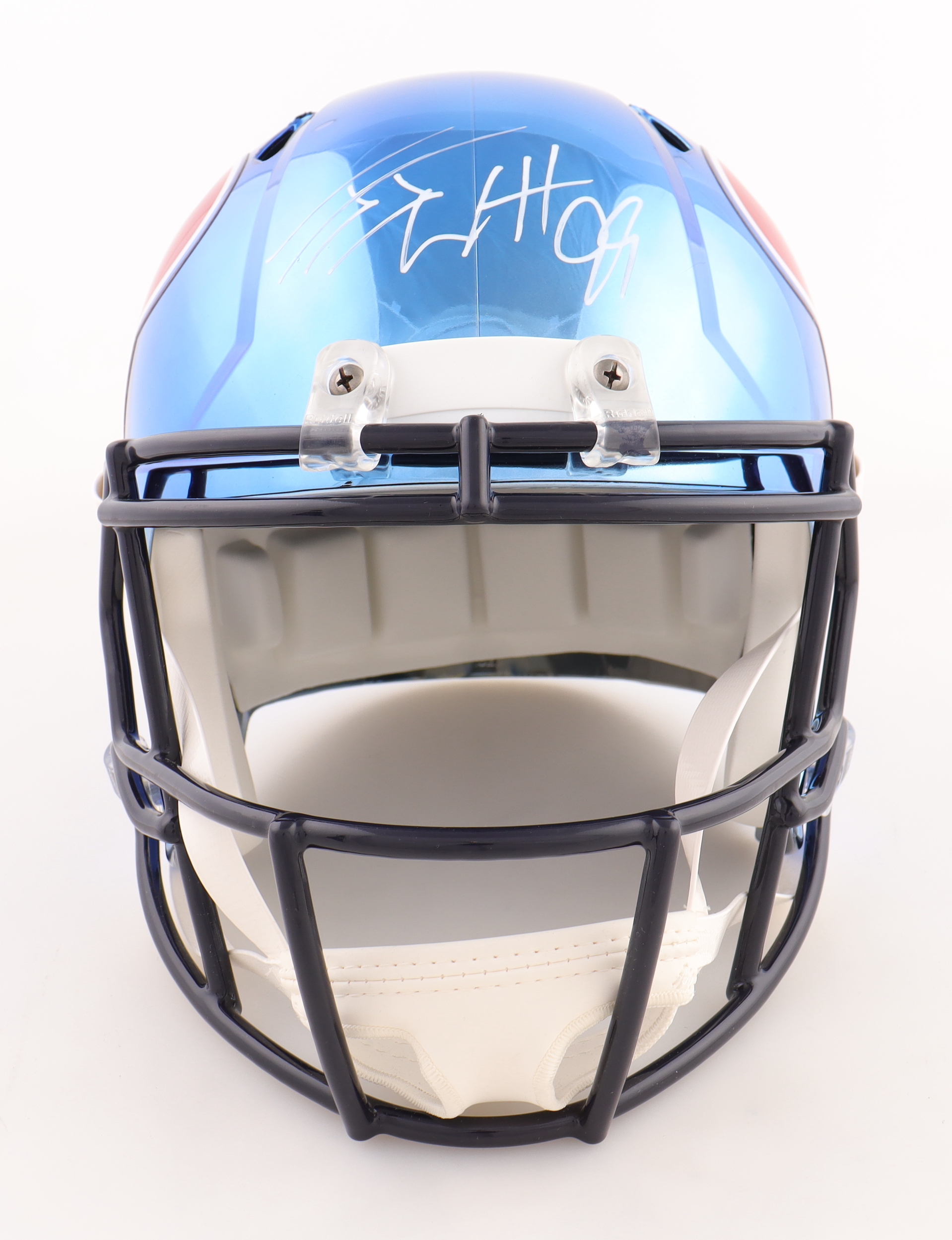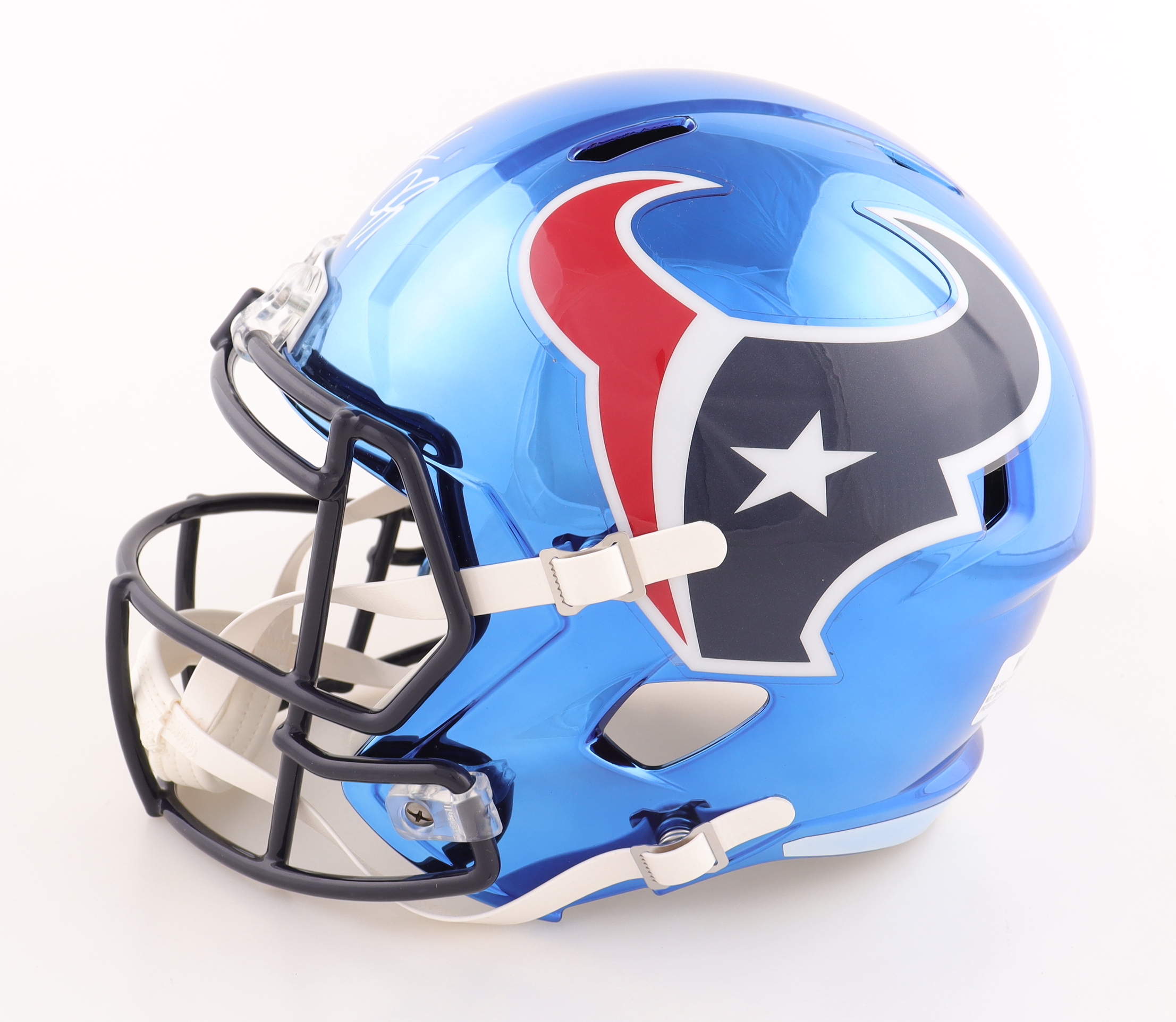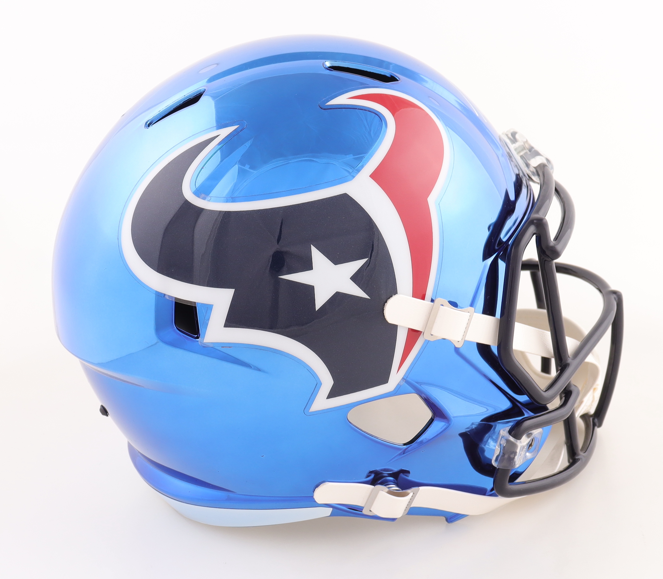 Riddell Houston Texans full-size replica chrome speed helmet. Hand-signed by J.J. Watt.