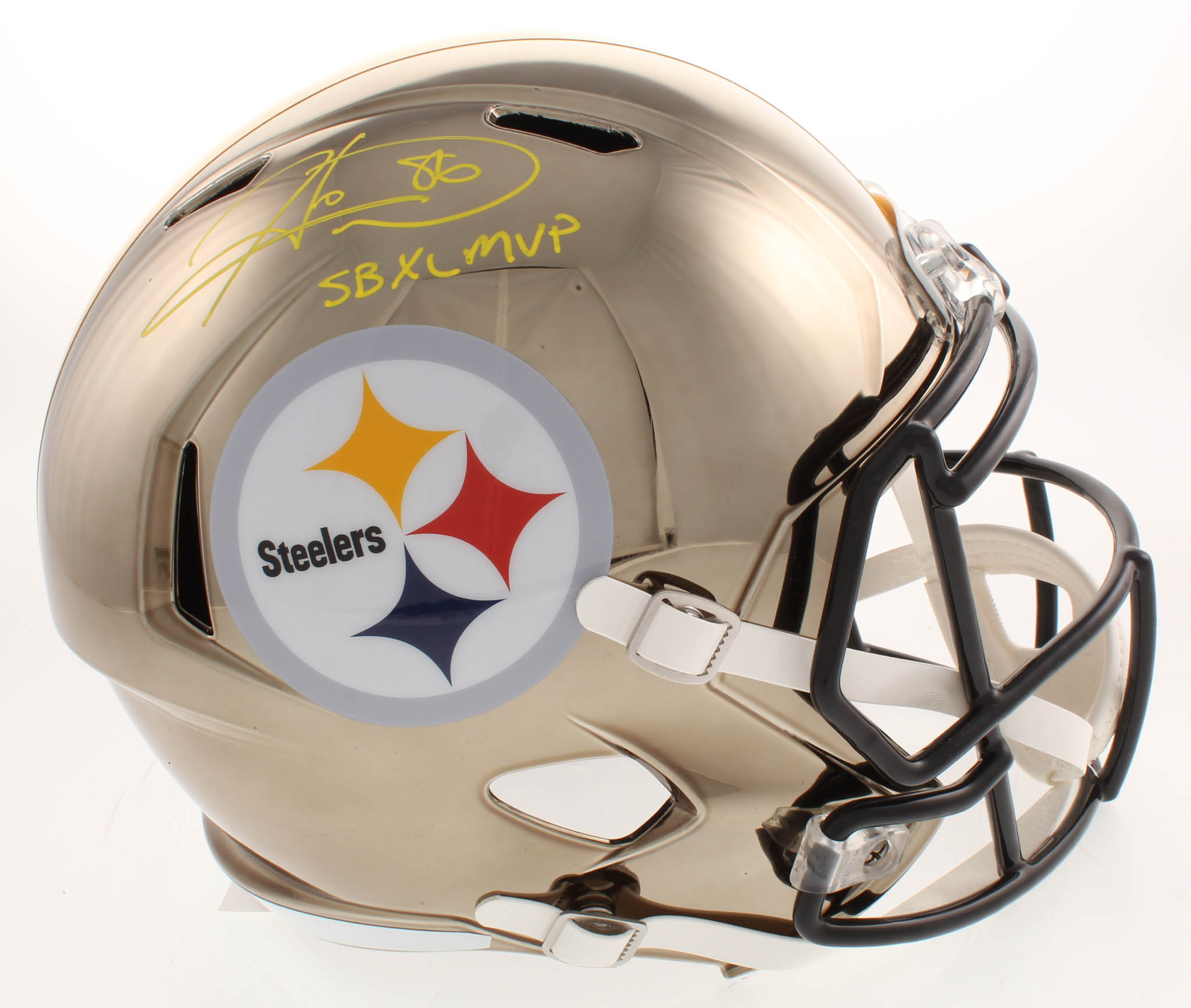 Hines Ward Signed Pittsburgh Steelers Full-Size Chrome Speed Helmet Inscribed "SB XL MVP" (Beckett)