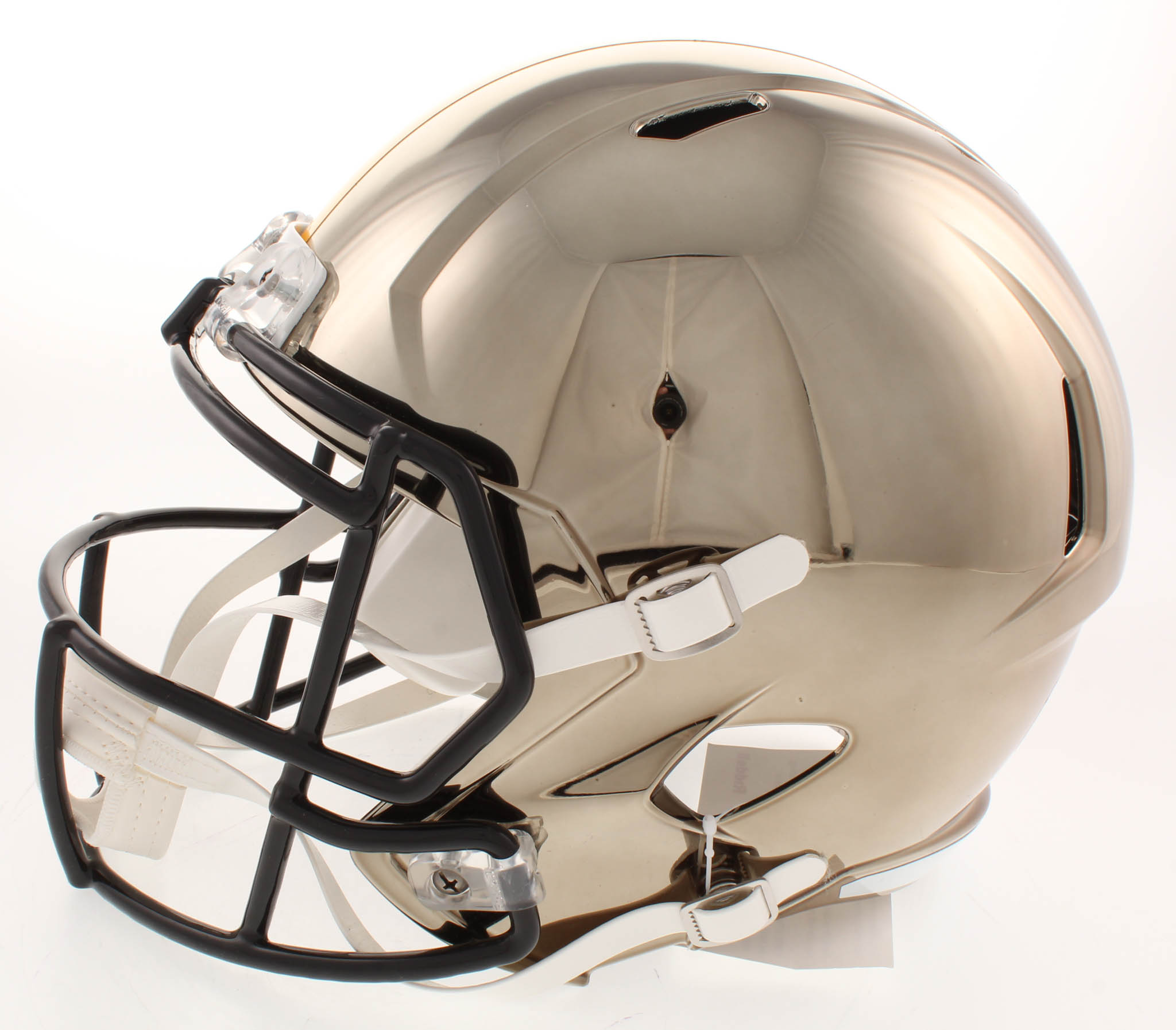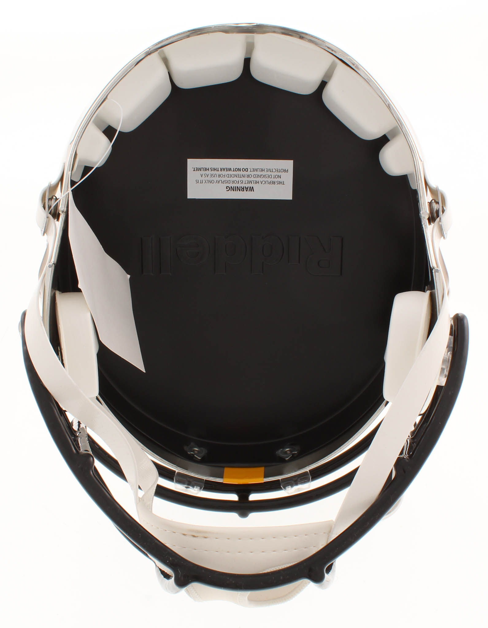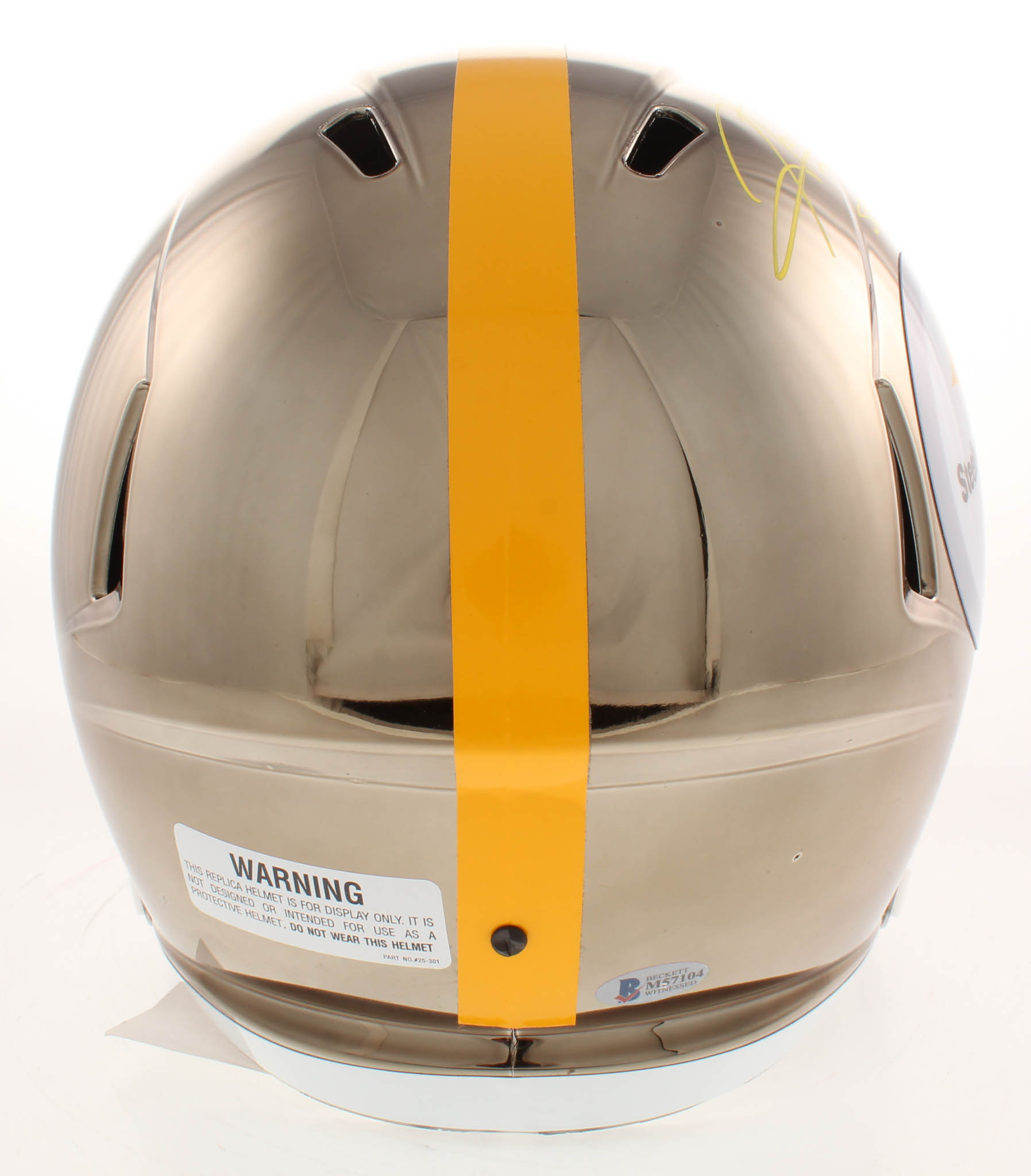 Riddell Pittsburgh Steelers full-size replica chrome speed helmet. Helmet has been hand-signed and inscribed by Hines Ward.