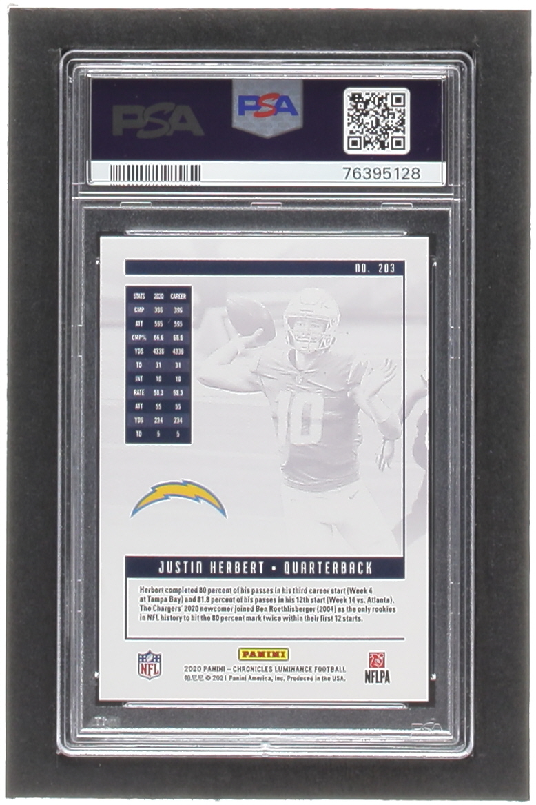 Justin Herbert 2020 Panini Luminance #203 Chronicles RC (PSA 10)