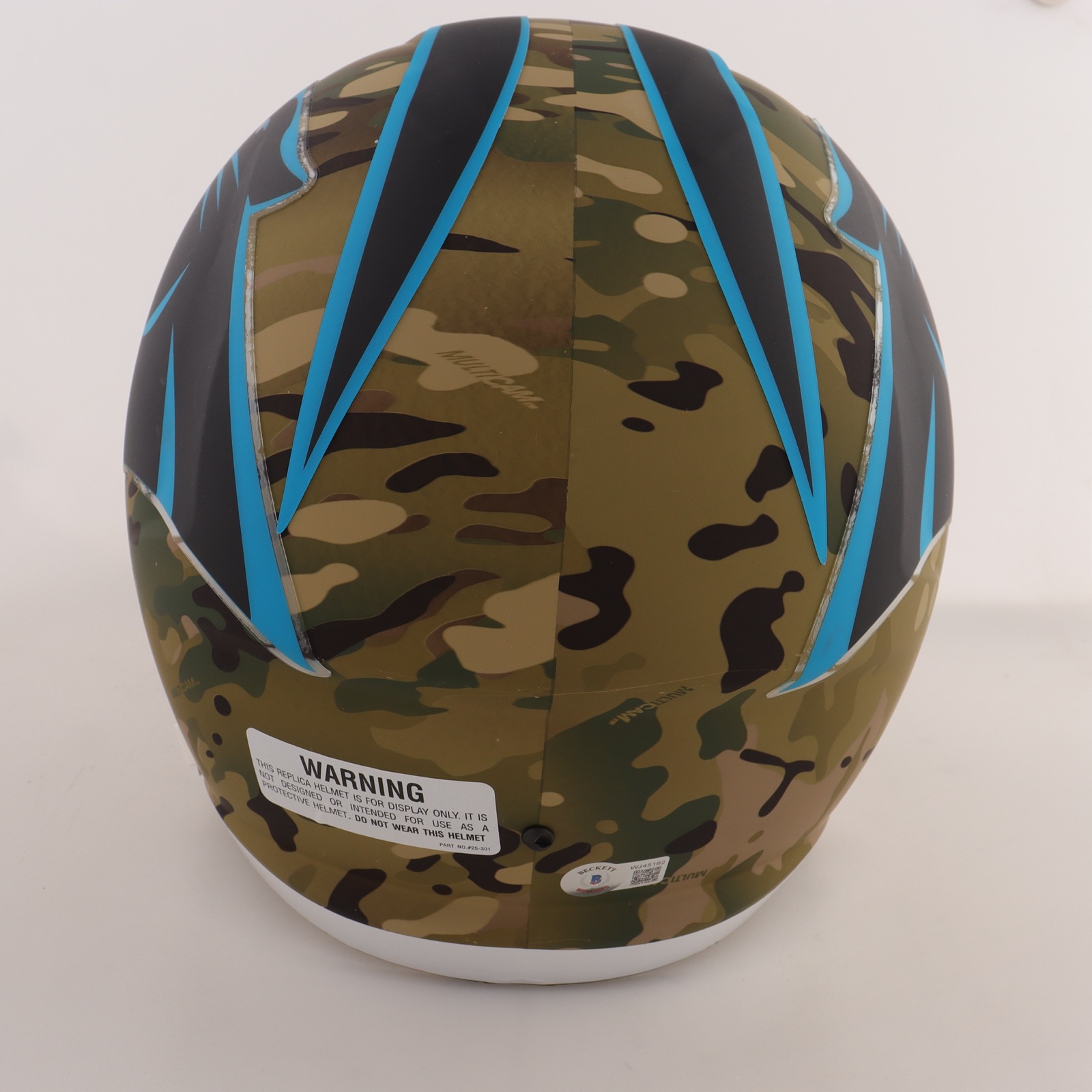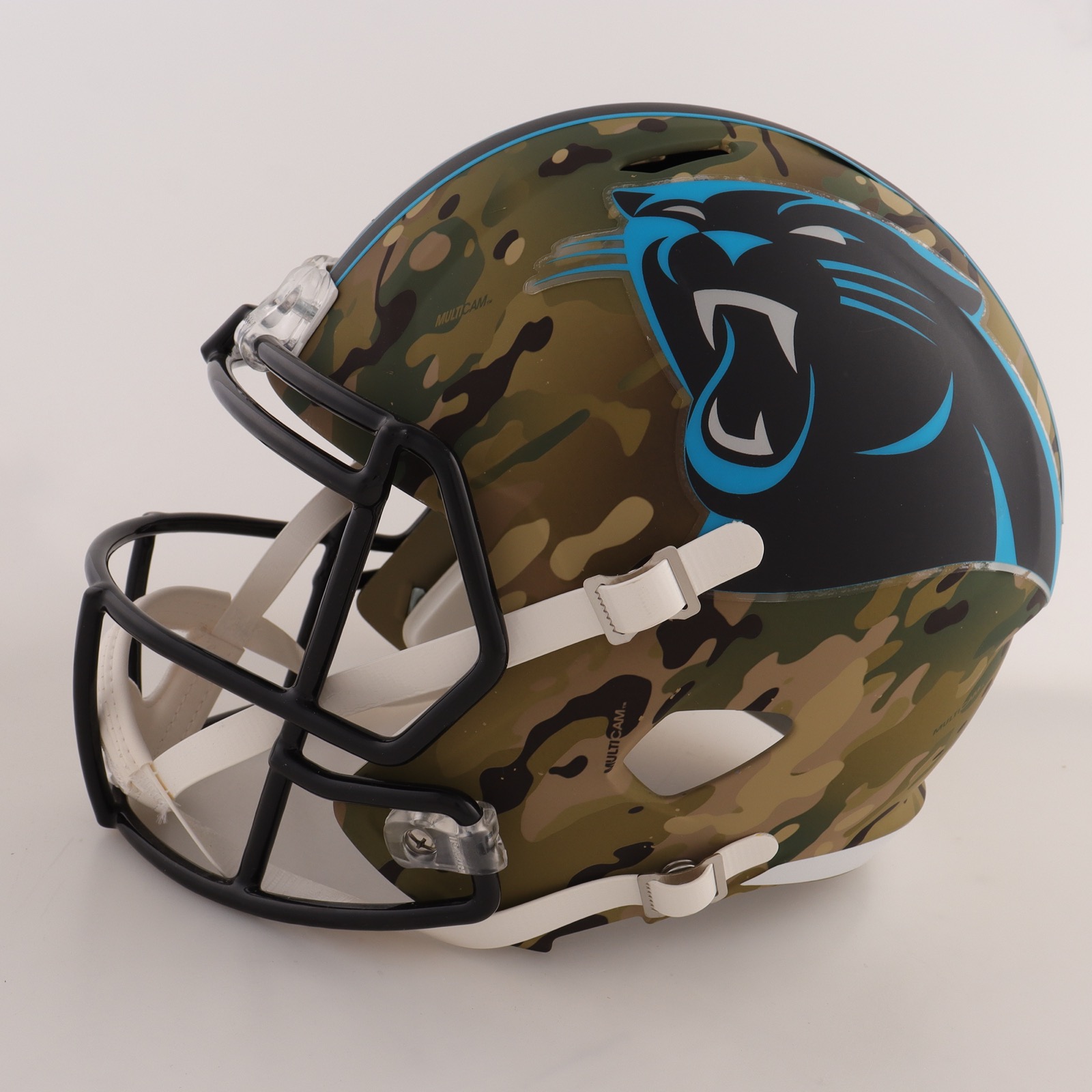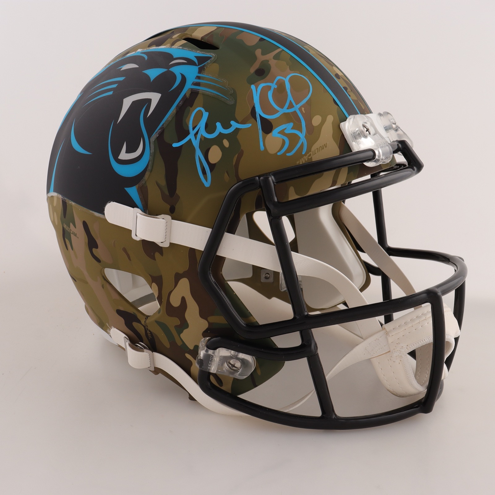 Riddell Carolina Panthers Full-Size replica camo Alternate Speed helmet has been hand-signed by Luke Kuechly.