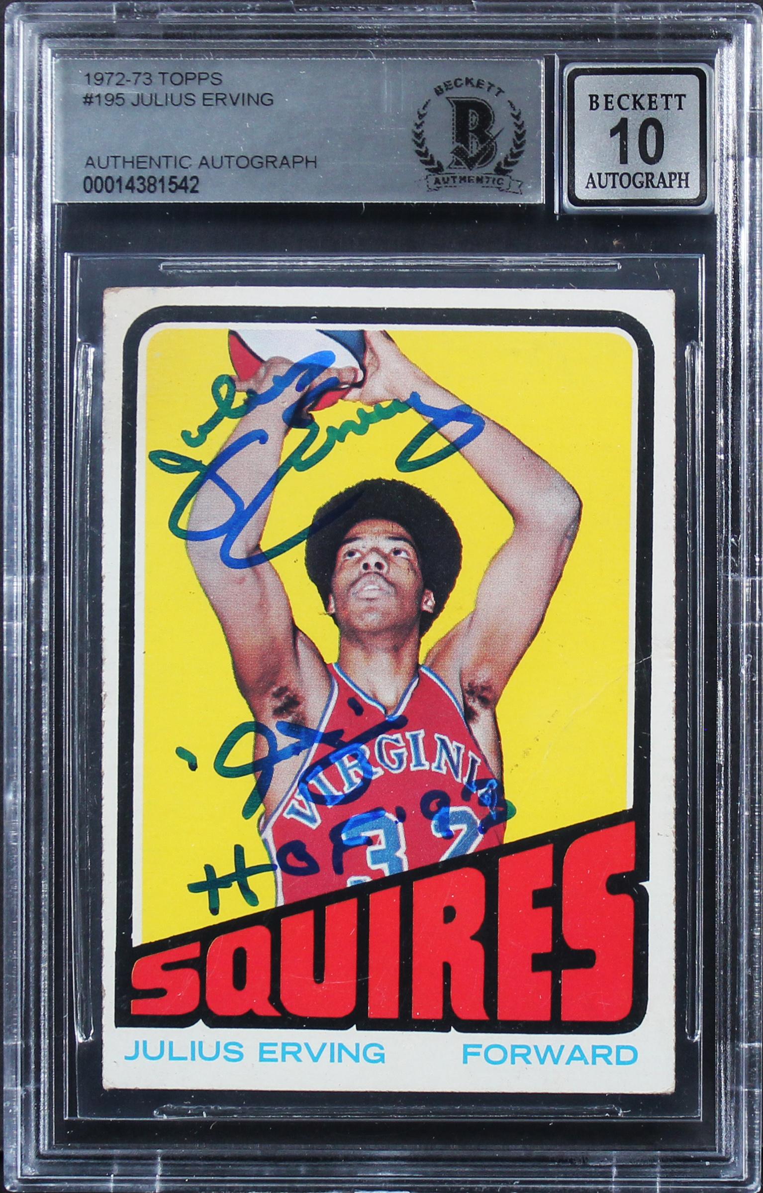Julius Erving Signed 1972-73 Topps #195 RC Inscribed "HOF 93" (BGS | Autograph Graded 10)