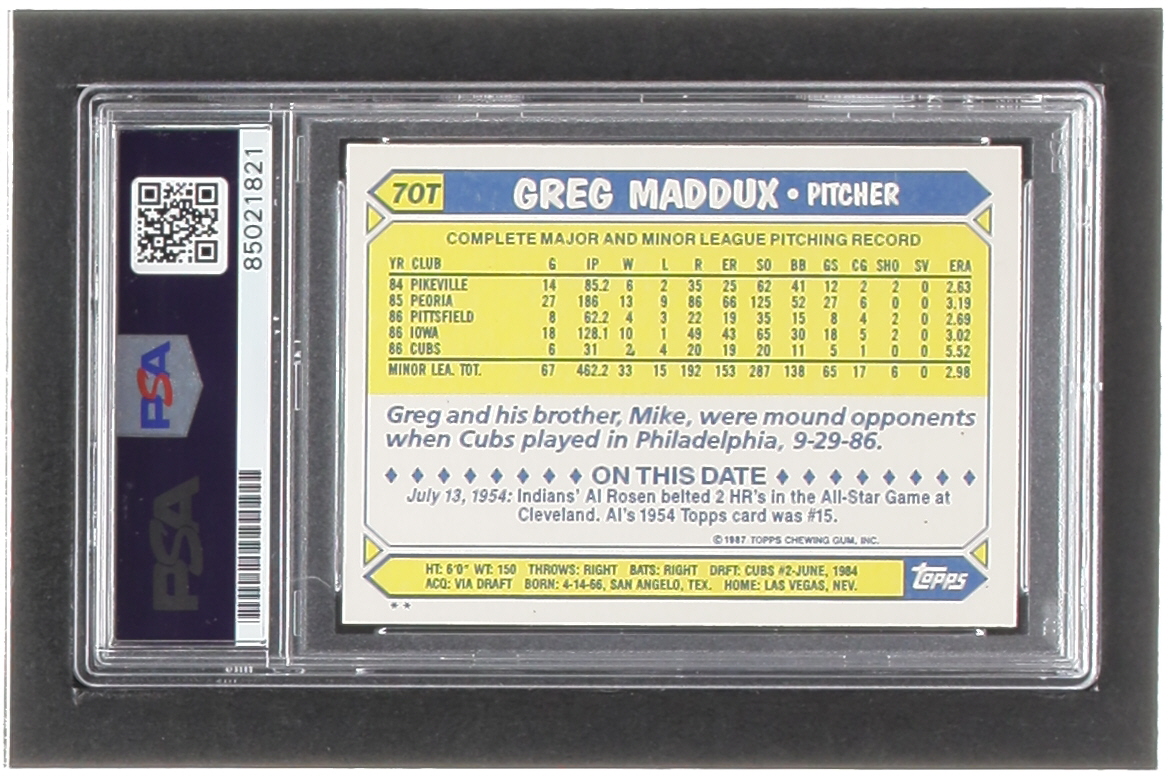 Greg Maddux Signed 1987 Topps Traded #70T XRC (PSA | Auto 10)