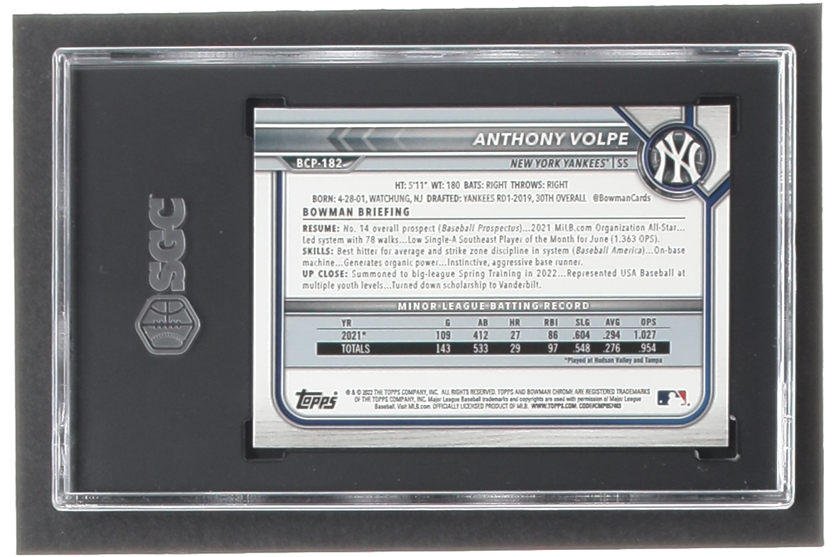 Anthony Volpe 2022 Bowman Chrome Sapphire Prospects #BCP182 (SGC 10)