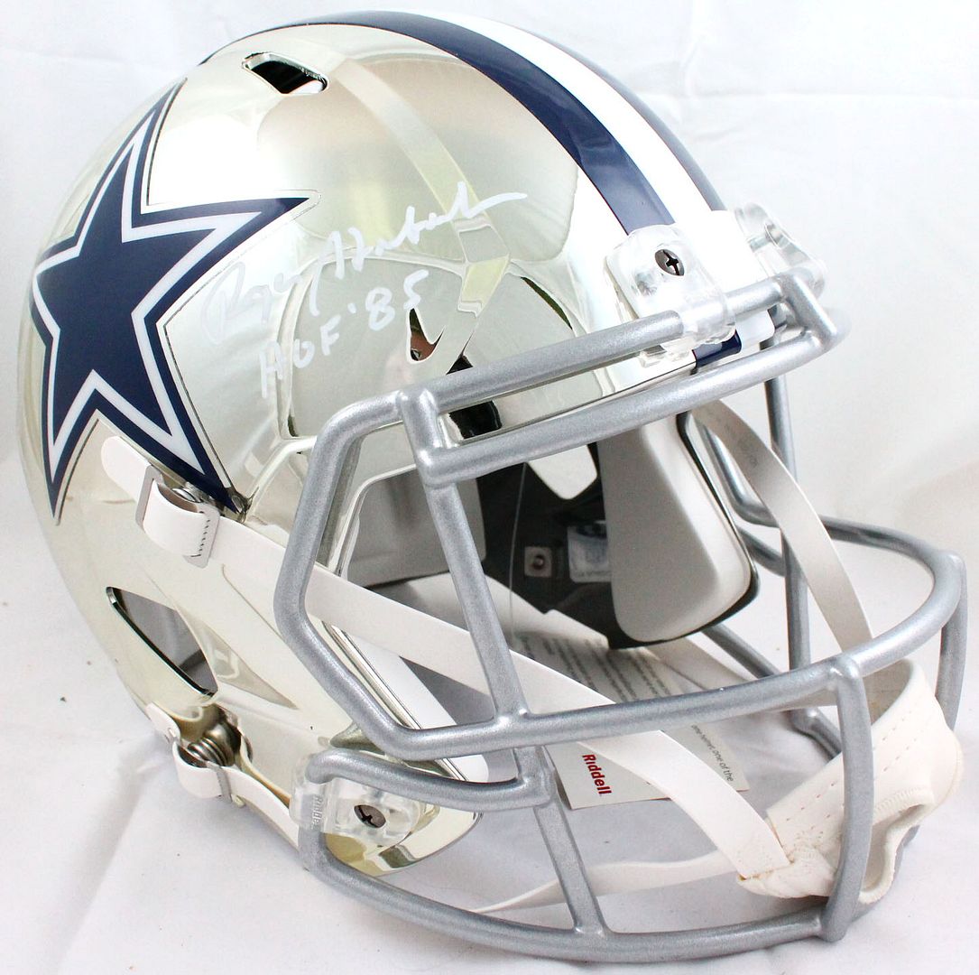 Riddell Dallas Cowboys full-size replica Chrome Speed helmet. Hand-signed and inscribed by Roger Staubach (HOF).