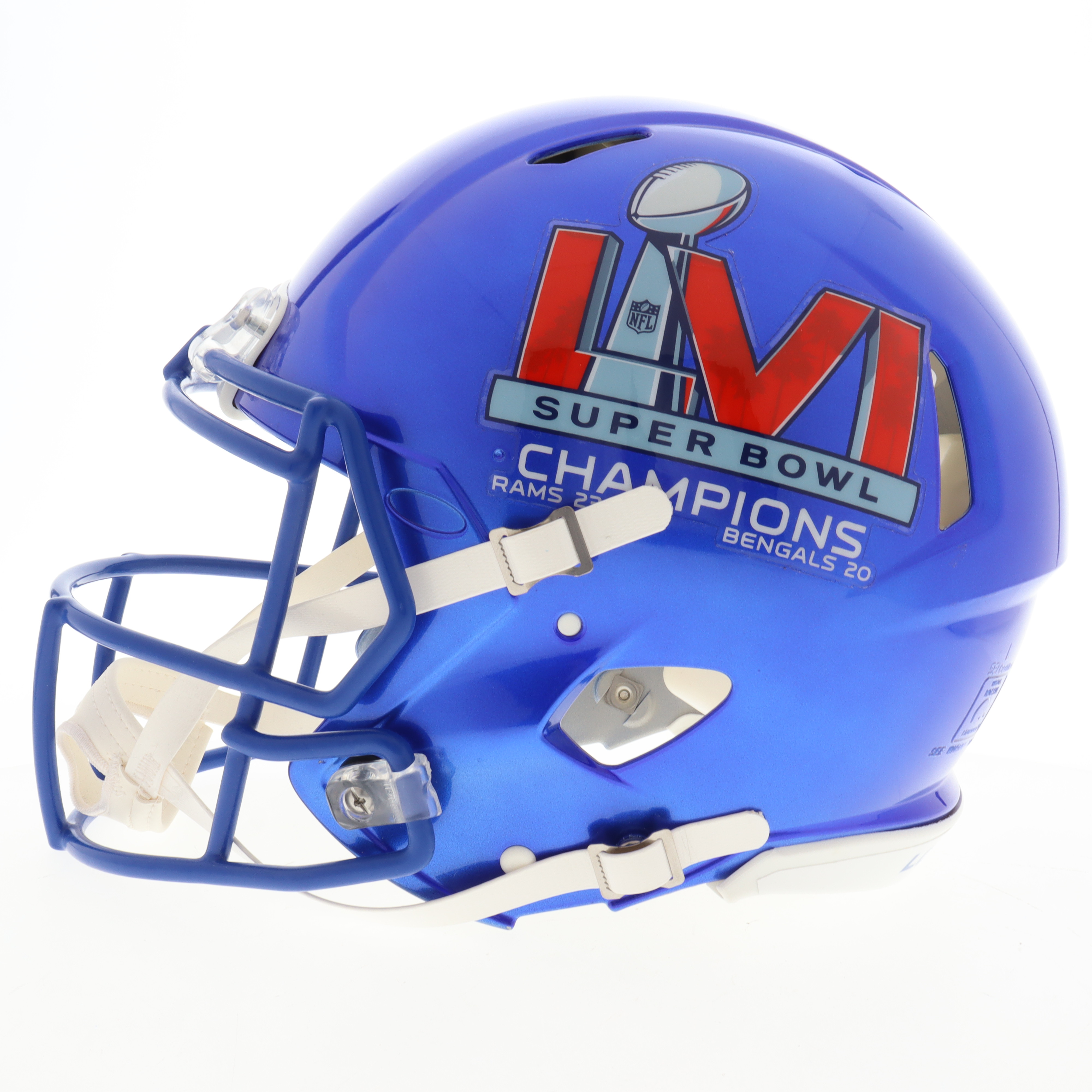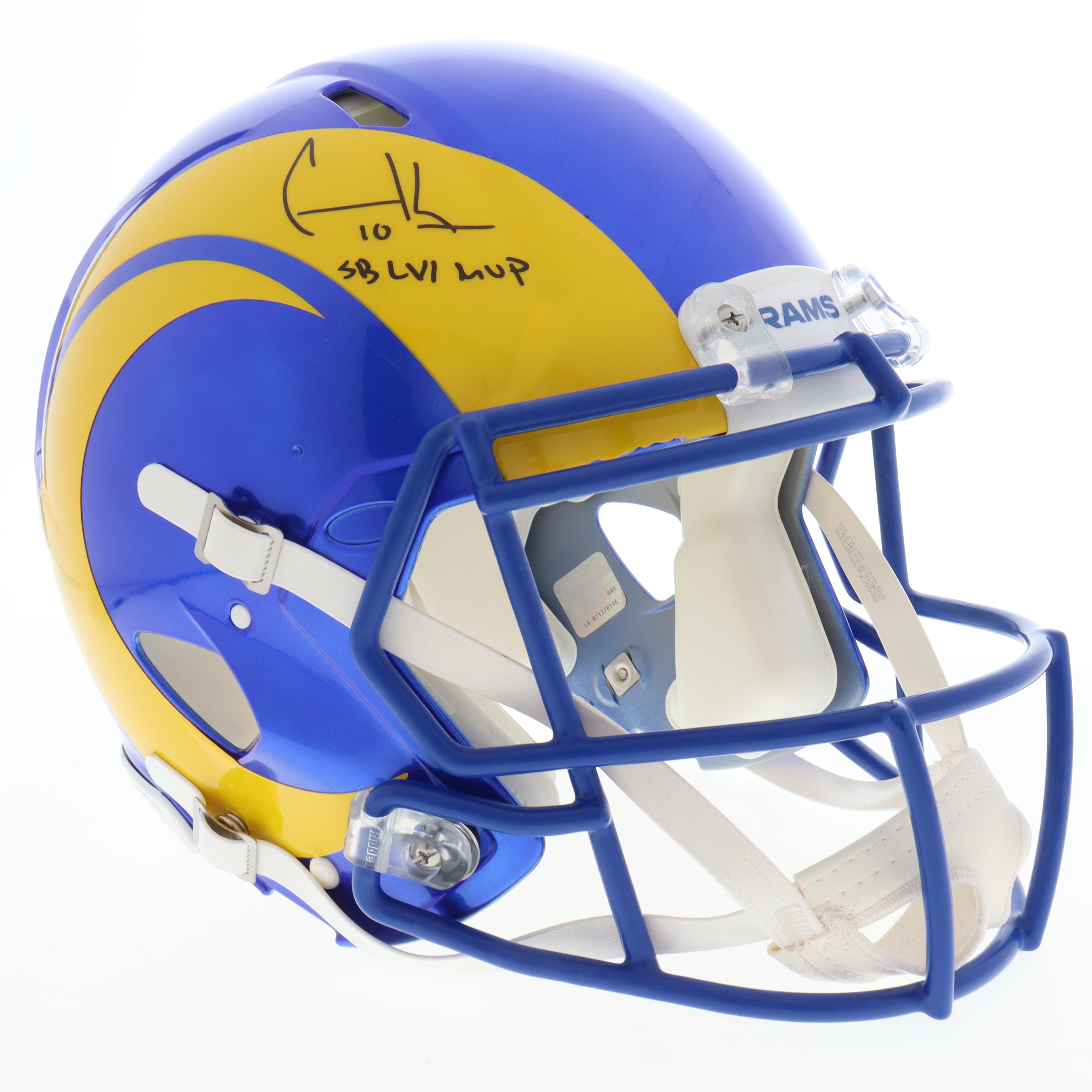 Riddell Los Angeles Rams Full-Size Authentic Super Bowl LVI logo speed helmet. Hand-signed and inscribed by Cooper Kupp.