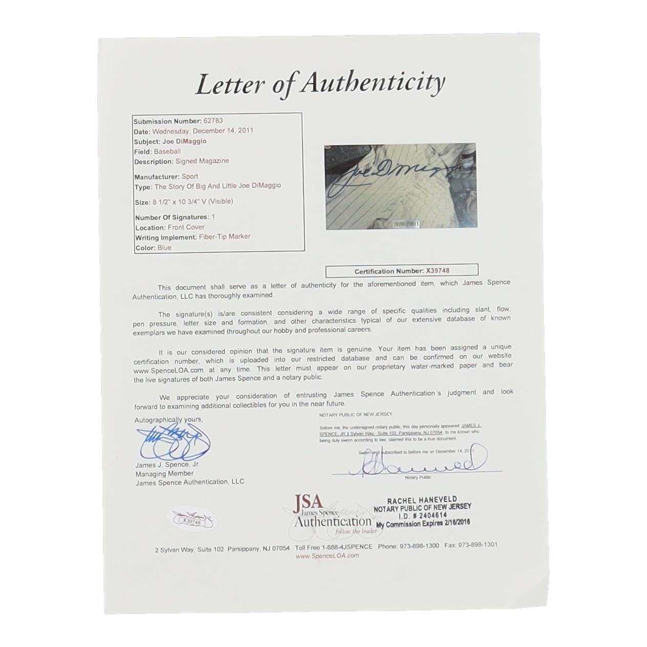 The autograph(s) includes an official James Spence Authentication (JSA) hologram and matching LOA for authenticity purposes.