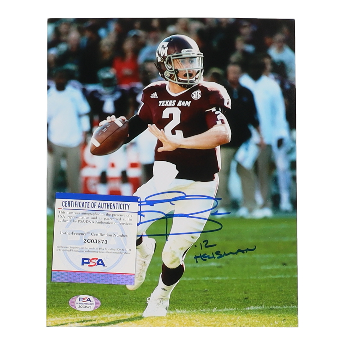 Johnny Manziel Signed Texas A&M Aggies 8x10 Photo Inscribed "'12 Heisman" (PSA)