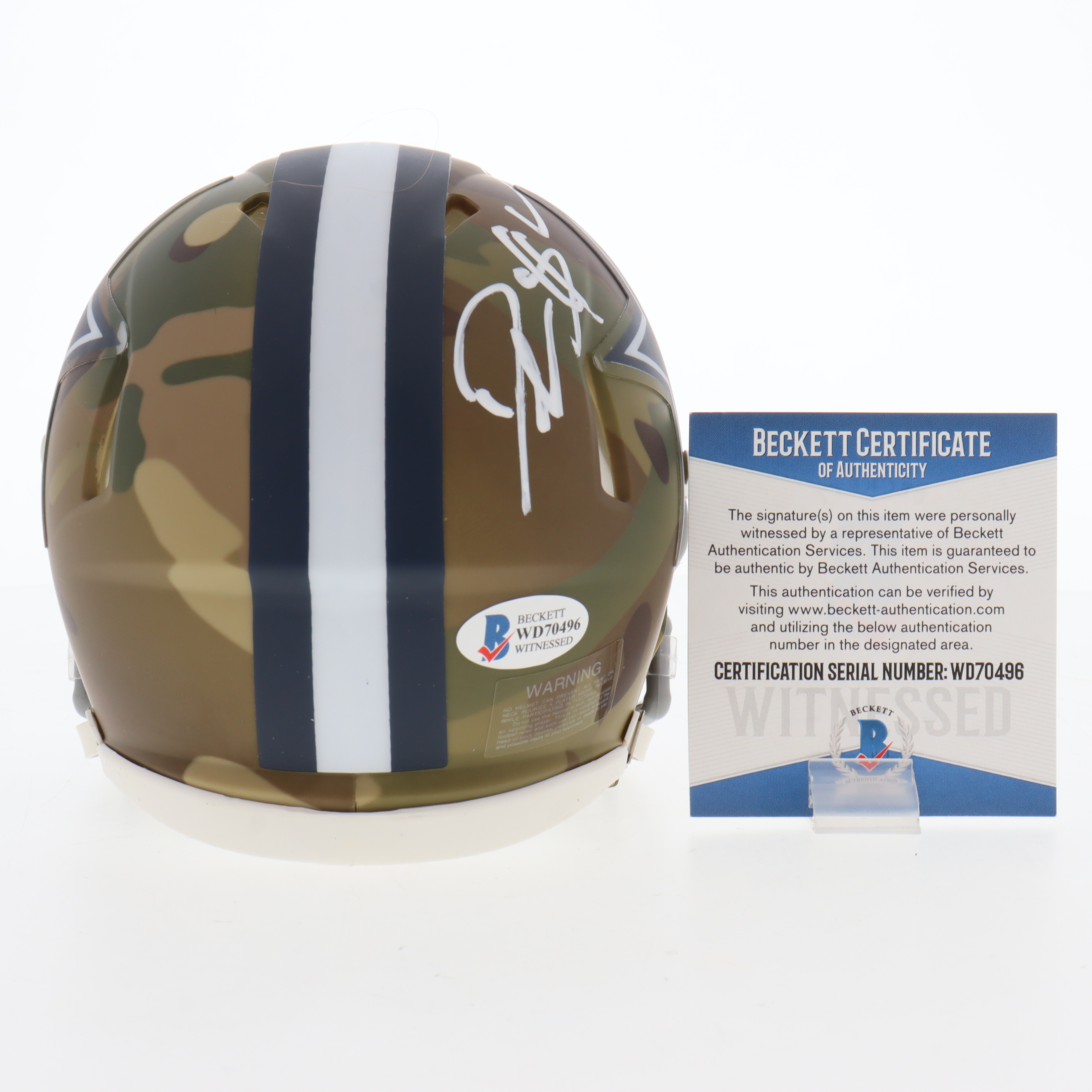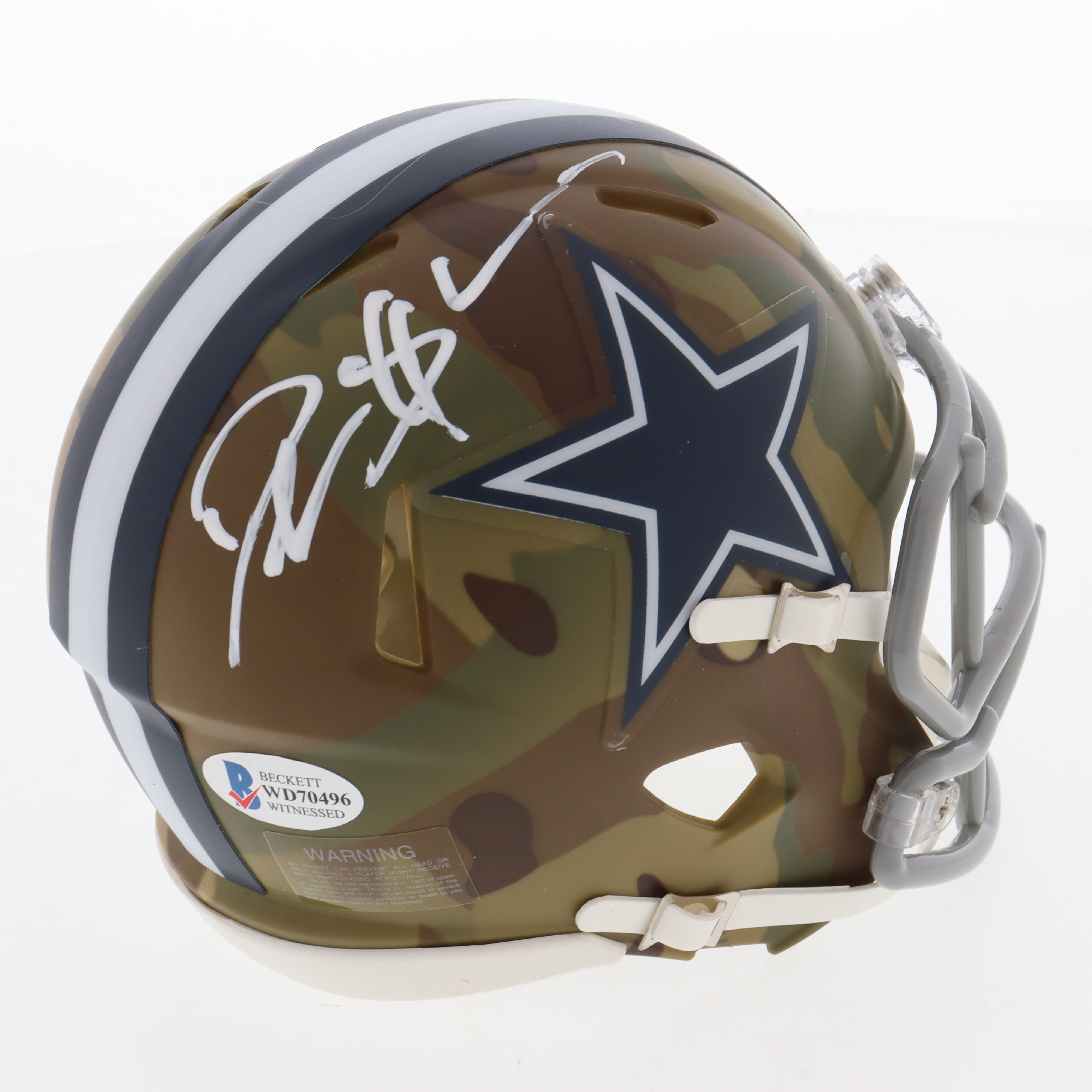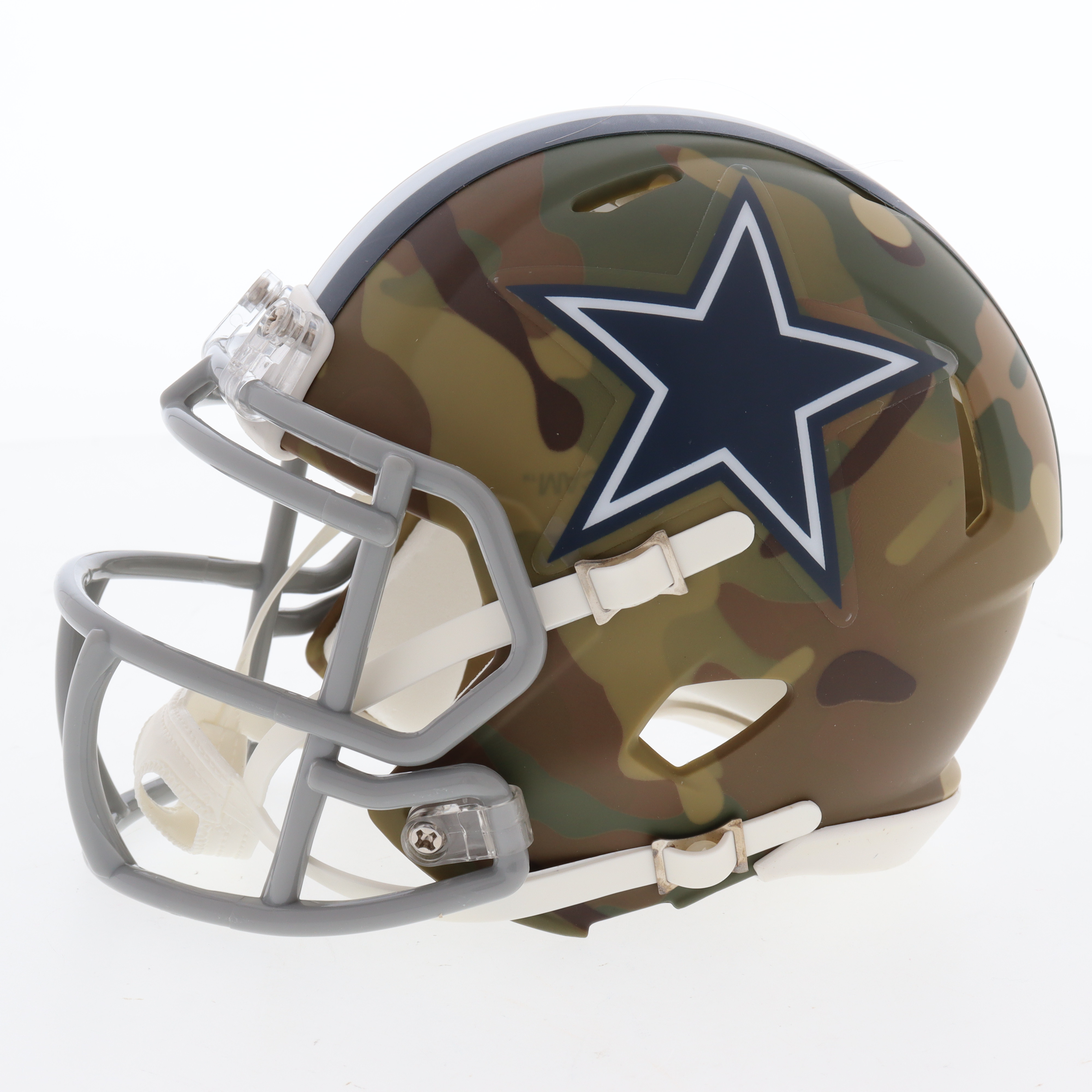 Riddell Dallas Cowboys camo alternate speed mini helmet. Hand-signed by Deion Sanders (HOF).