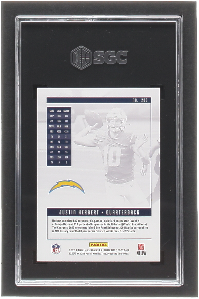 Justin Herbert 2020 Panini Luminance Green #203 Chronicles RC (SGC 10)