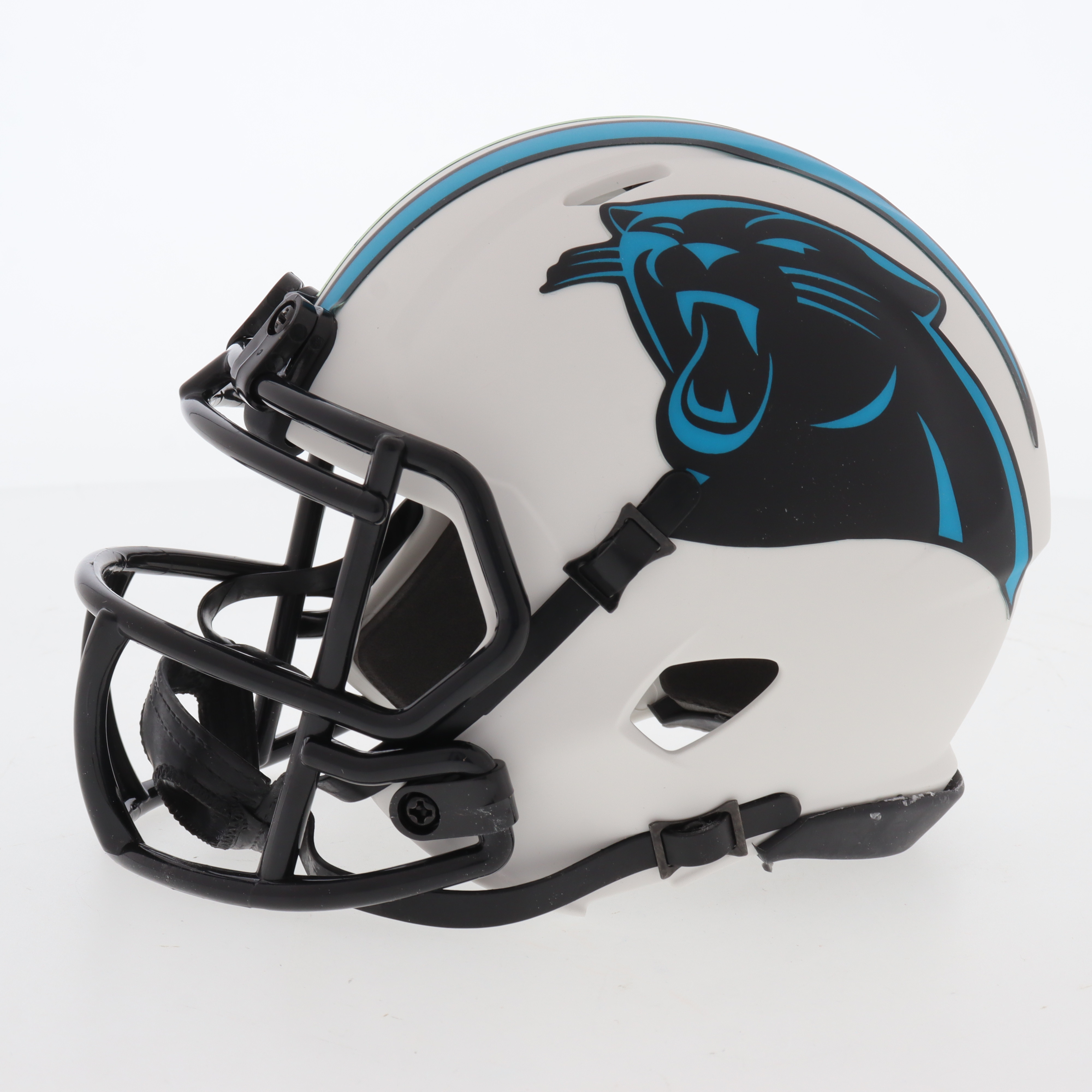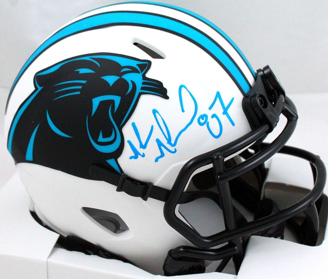 Riddell Carolina Panthers lunar eclipse alternate speed mini helmet. Hand-signed by Muhsin Muhammad.