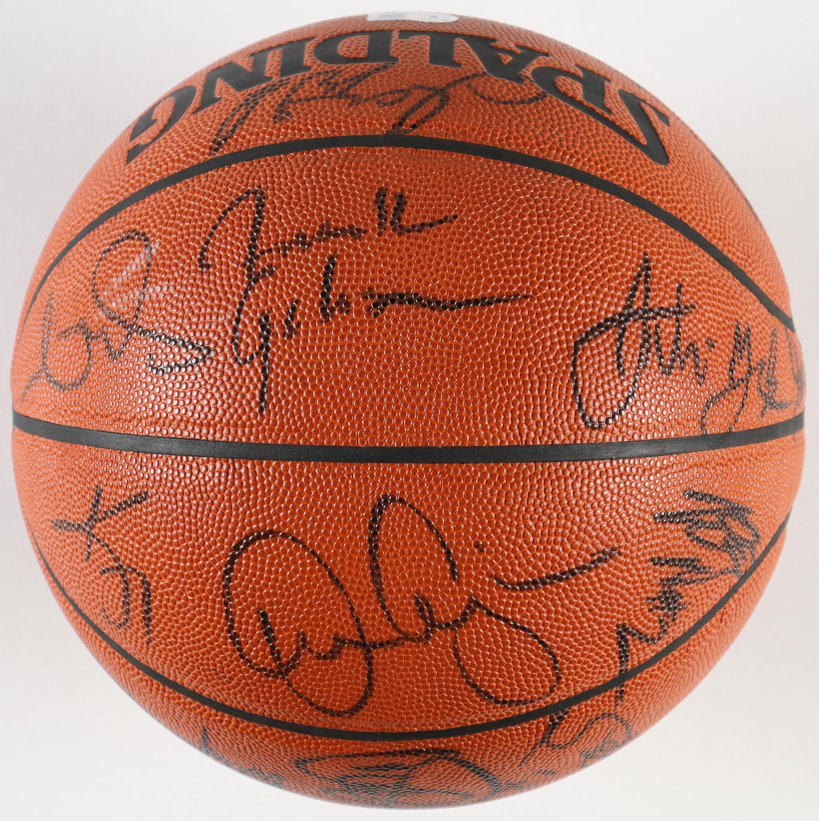 Spalding Indoor/Outdoor NBA basketball has been hand-signed by (19) with Steve Nash, Danny Ainge, Kevin Johnson, Danny Manning, Cedric Ceballos, Jason Kidd, Mark Bryant, Roger Reid, Marko Milic, Antonio McDyess, Scott Skiles, Loren Meyer and George McCloud (Phoenix Suns).