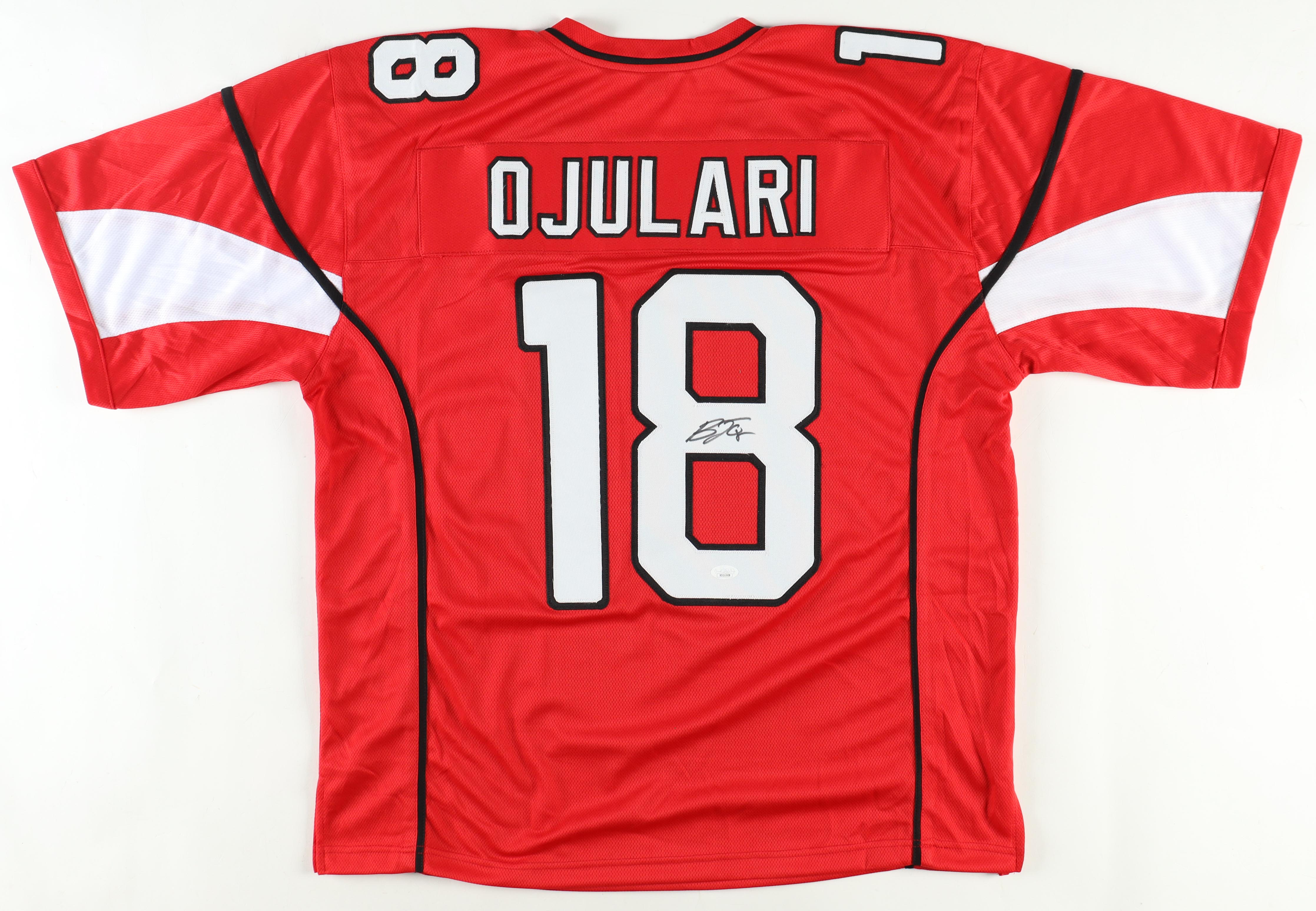 Custom jersey with everything sewn on, size XL. Has been hand-signed by BJ Ojulari.