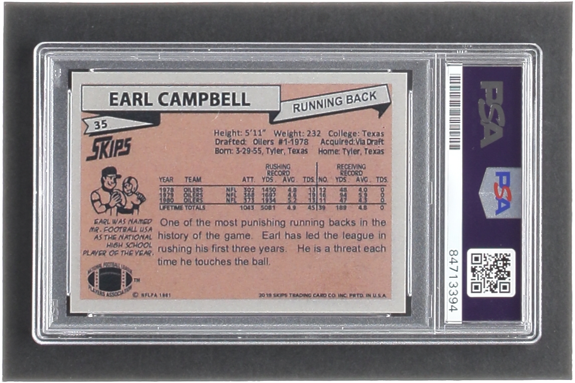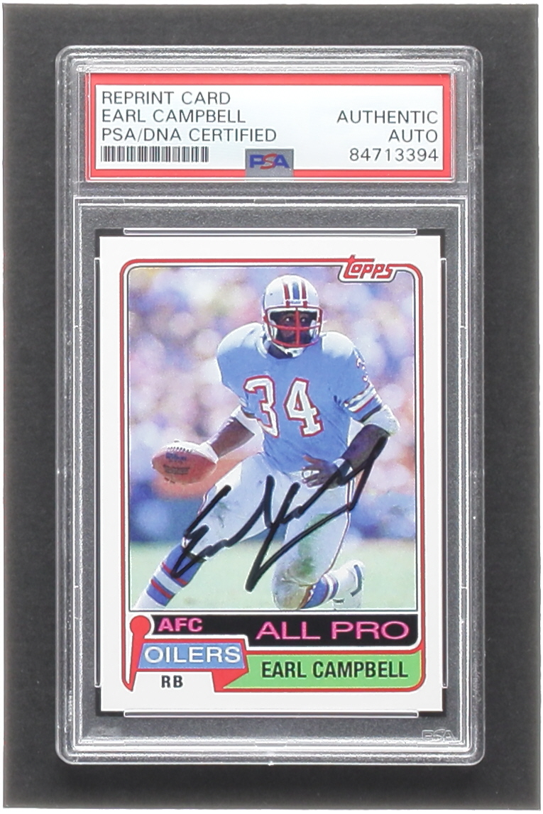 Earl Campbell Signed Topps Reprint Card (PSA)