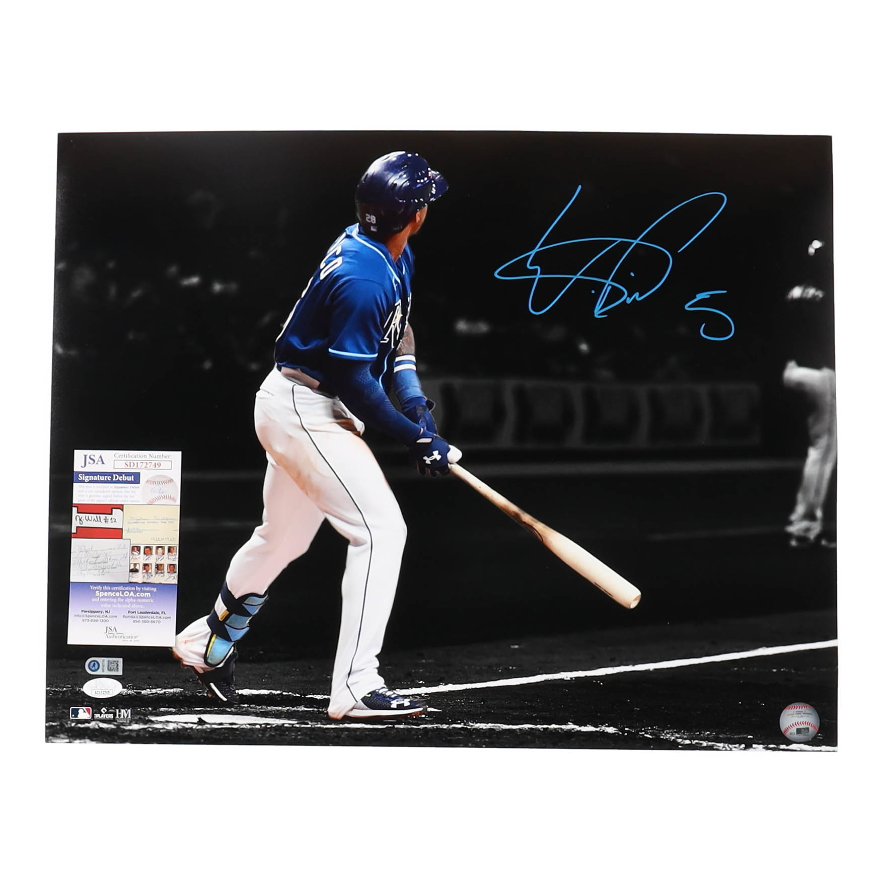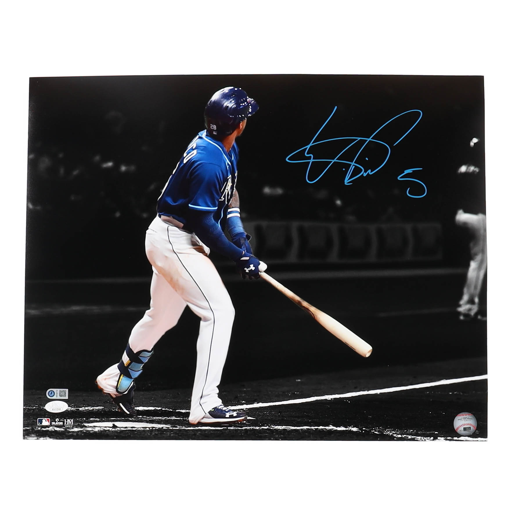 Photo measures 16" x 20" in size and has been hand-signed by Wander Franco (Tampa Bay Rays). Please note, the signature is smudged.